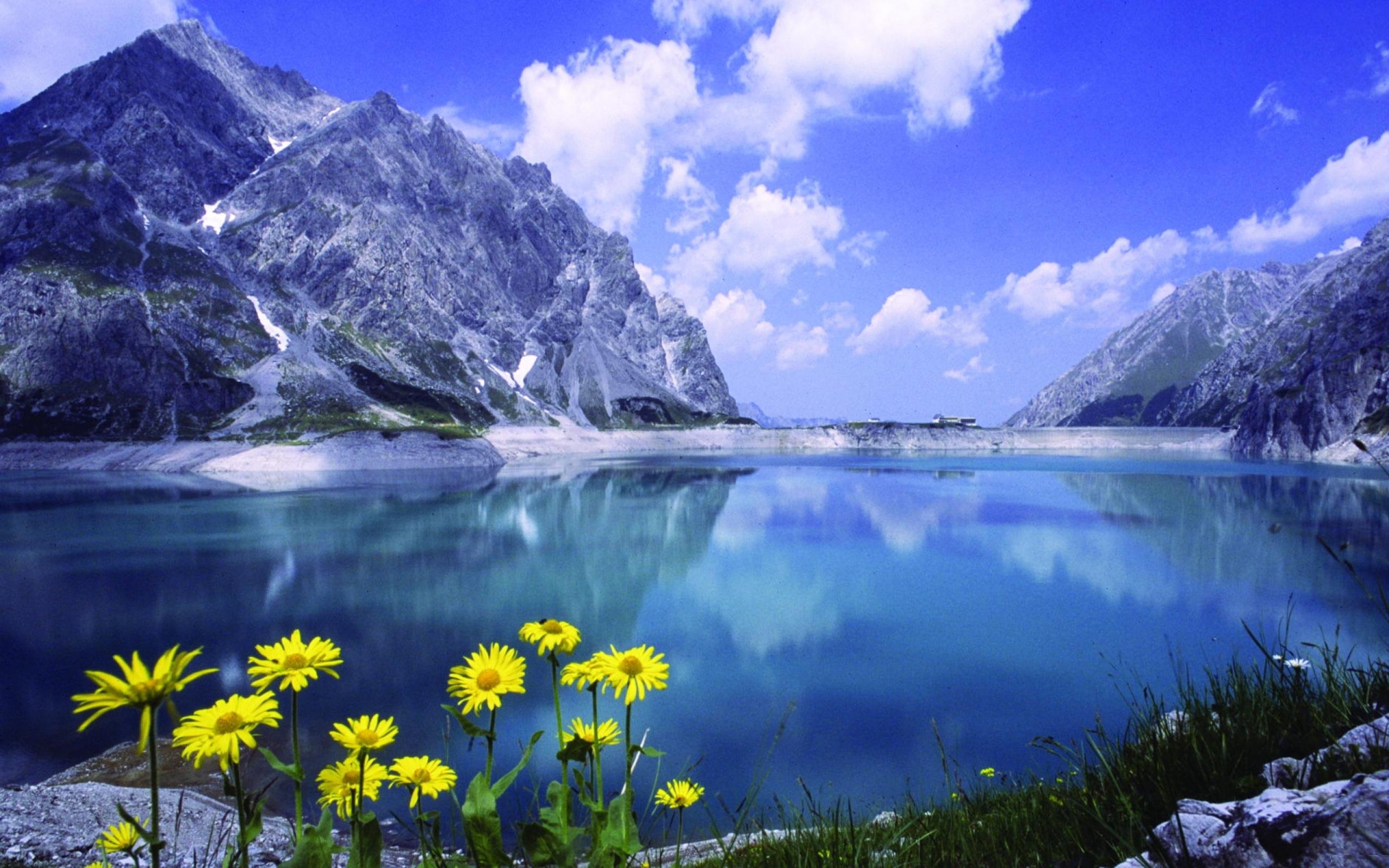 Пейзаж горы и озеро