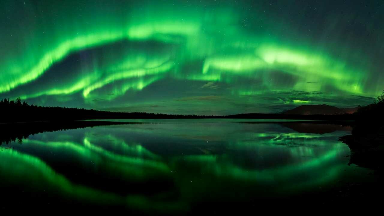 Аляска Северное сияние над озером