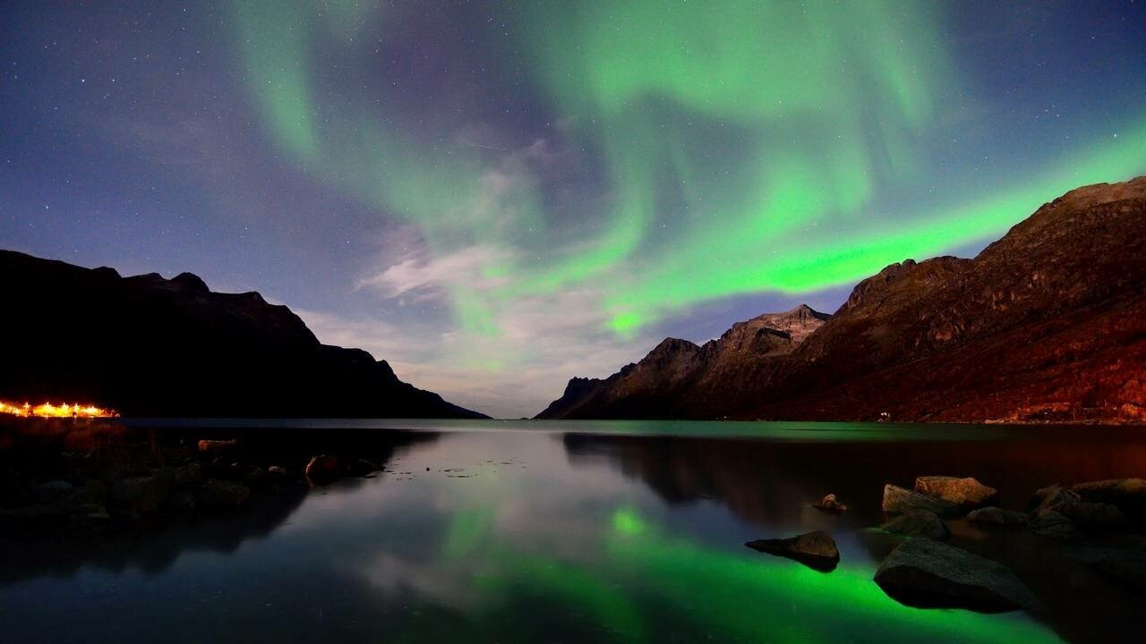 Северное сияние в горах Норвегии