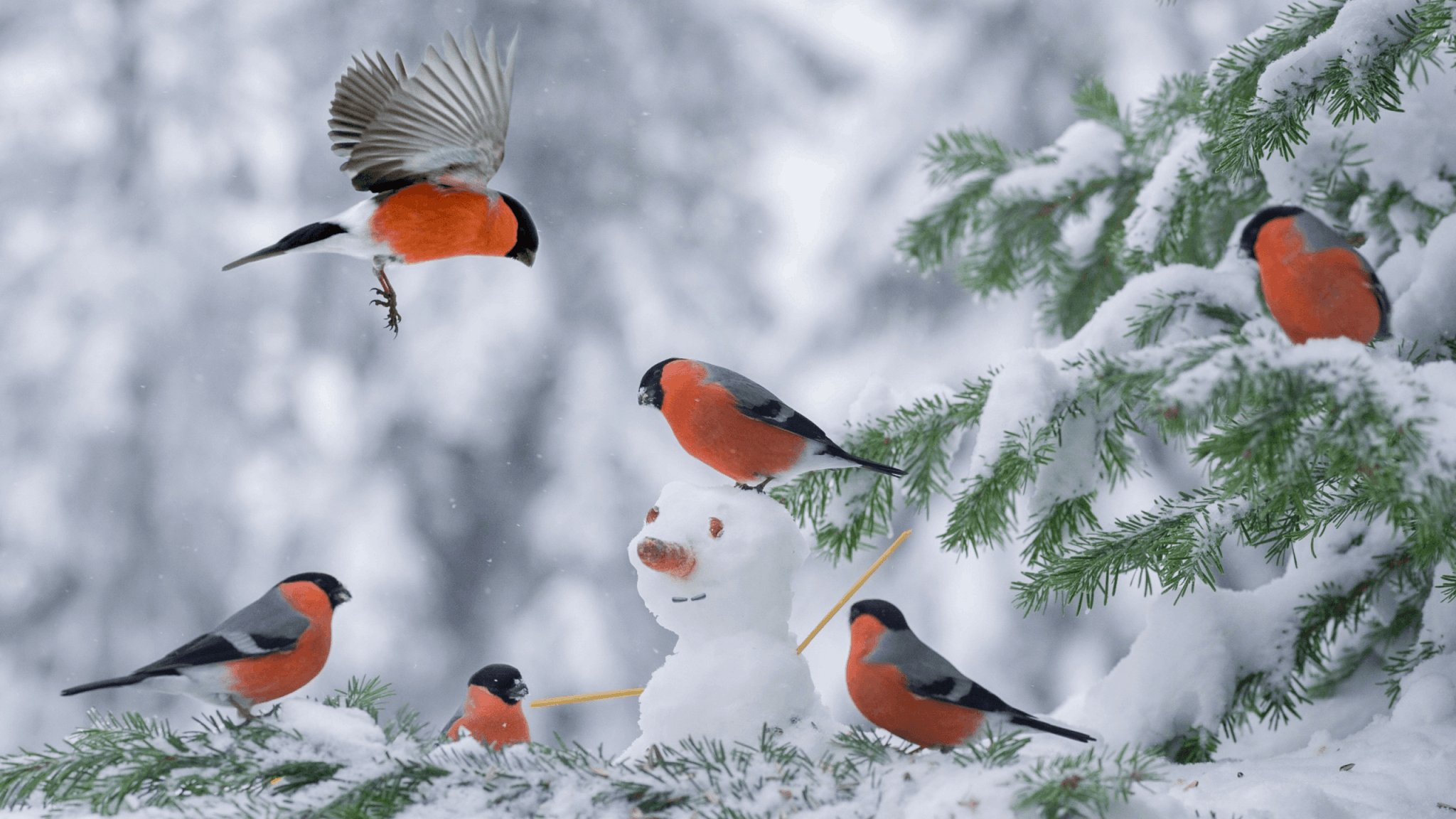 Заставка на рабочий стол зима Снегири