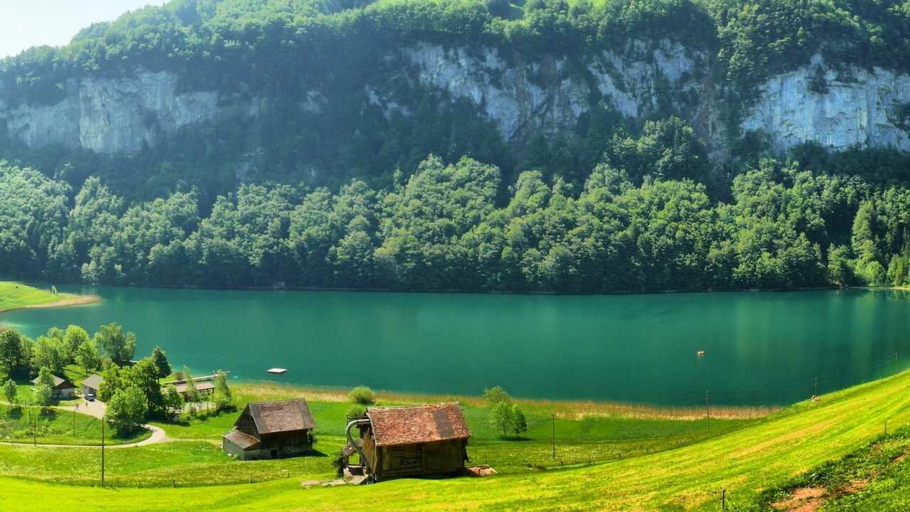 Швейцария природа домик озеро Альпы