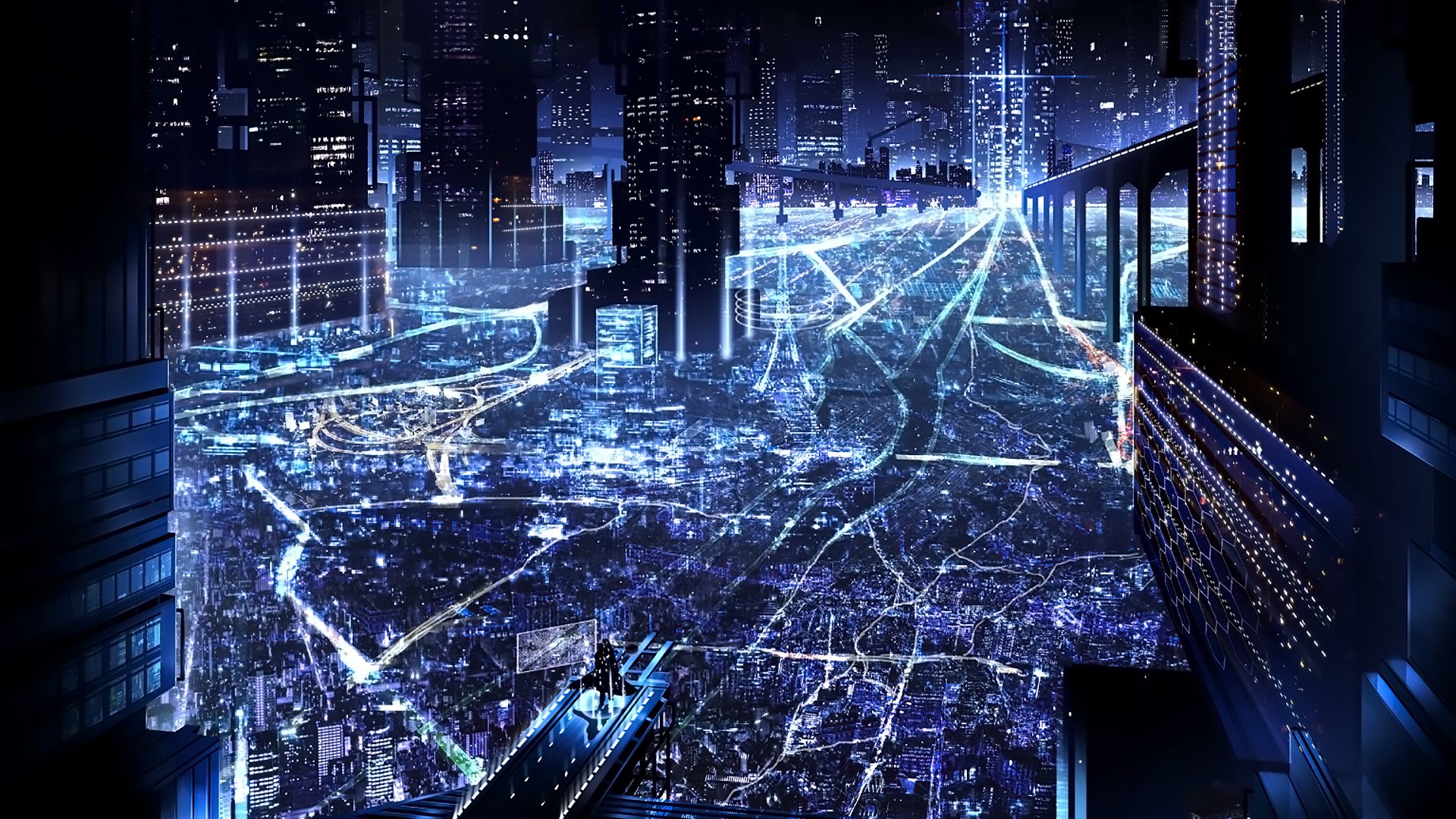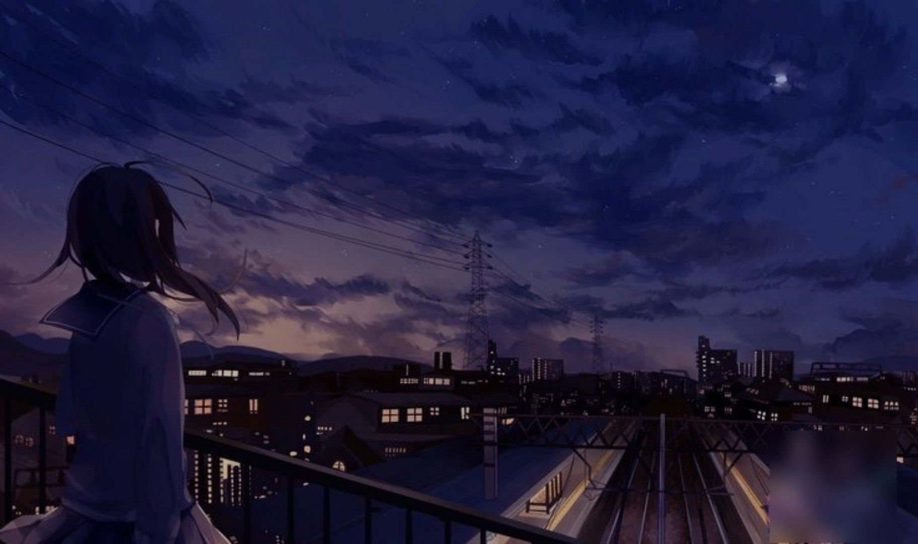 Аниме город ночью