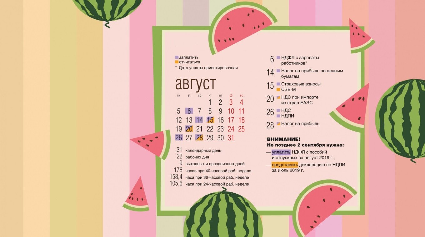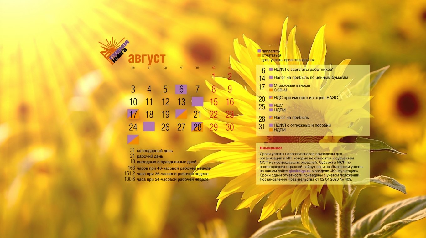Календарь бухгалтера июль