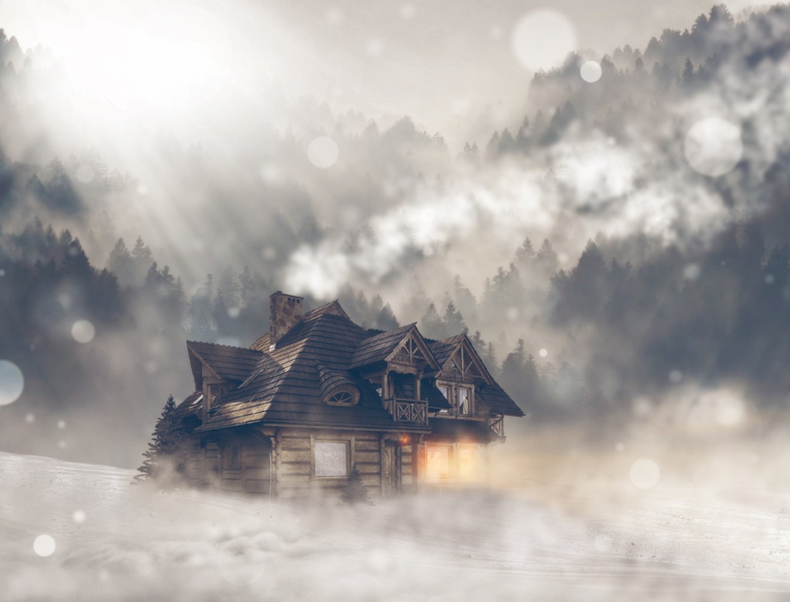 Домик в зимнем лесу арт