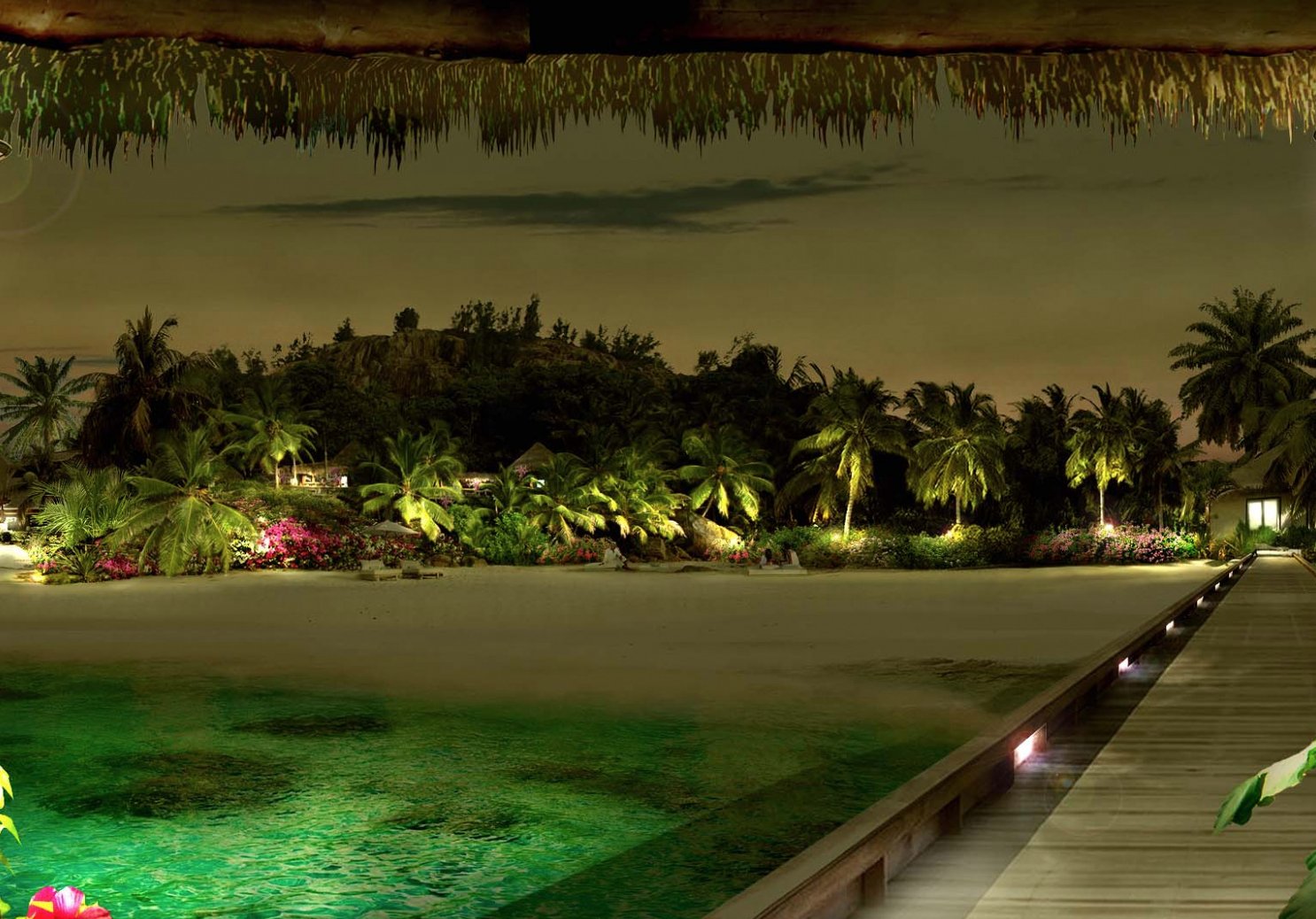 Мальдивы, океан, пальмы, бунгало