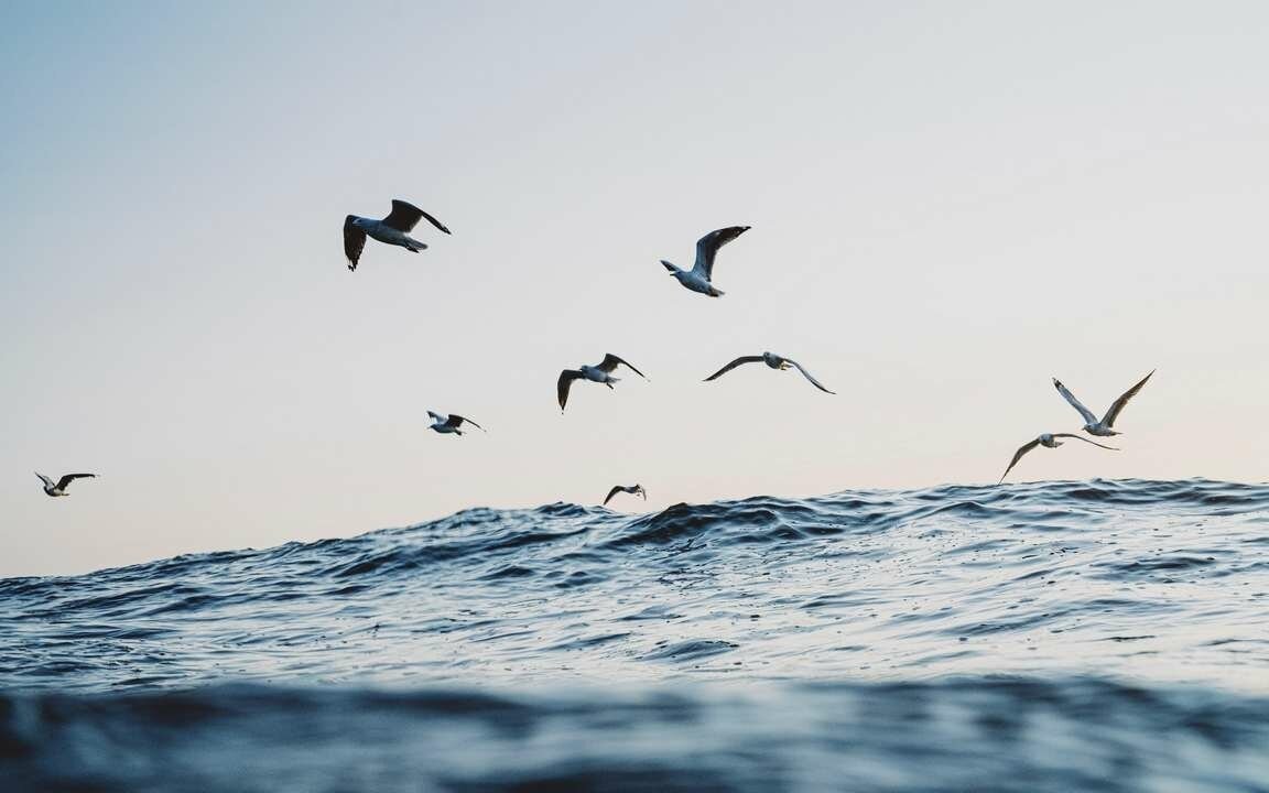 Птицы на фоне моря