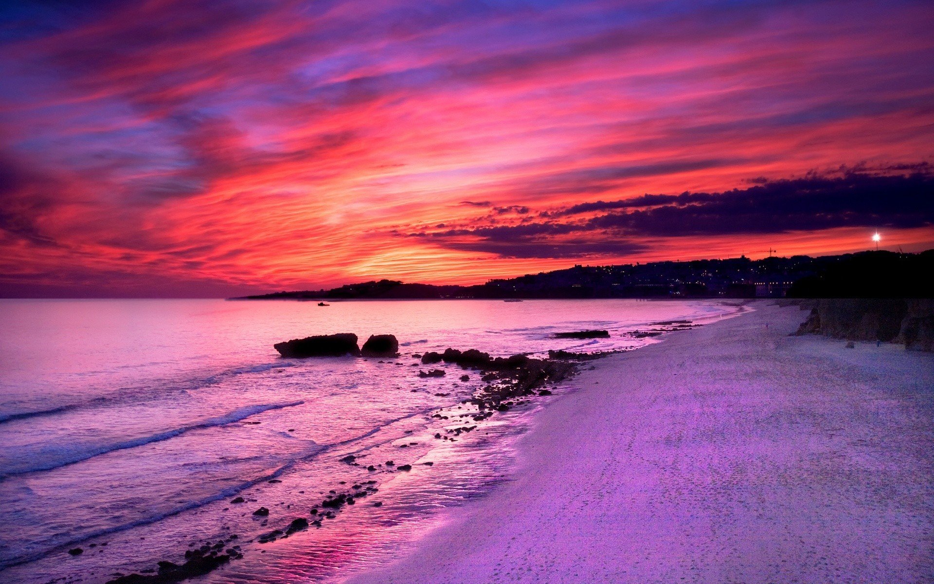 Розовый закат на море
