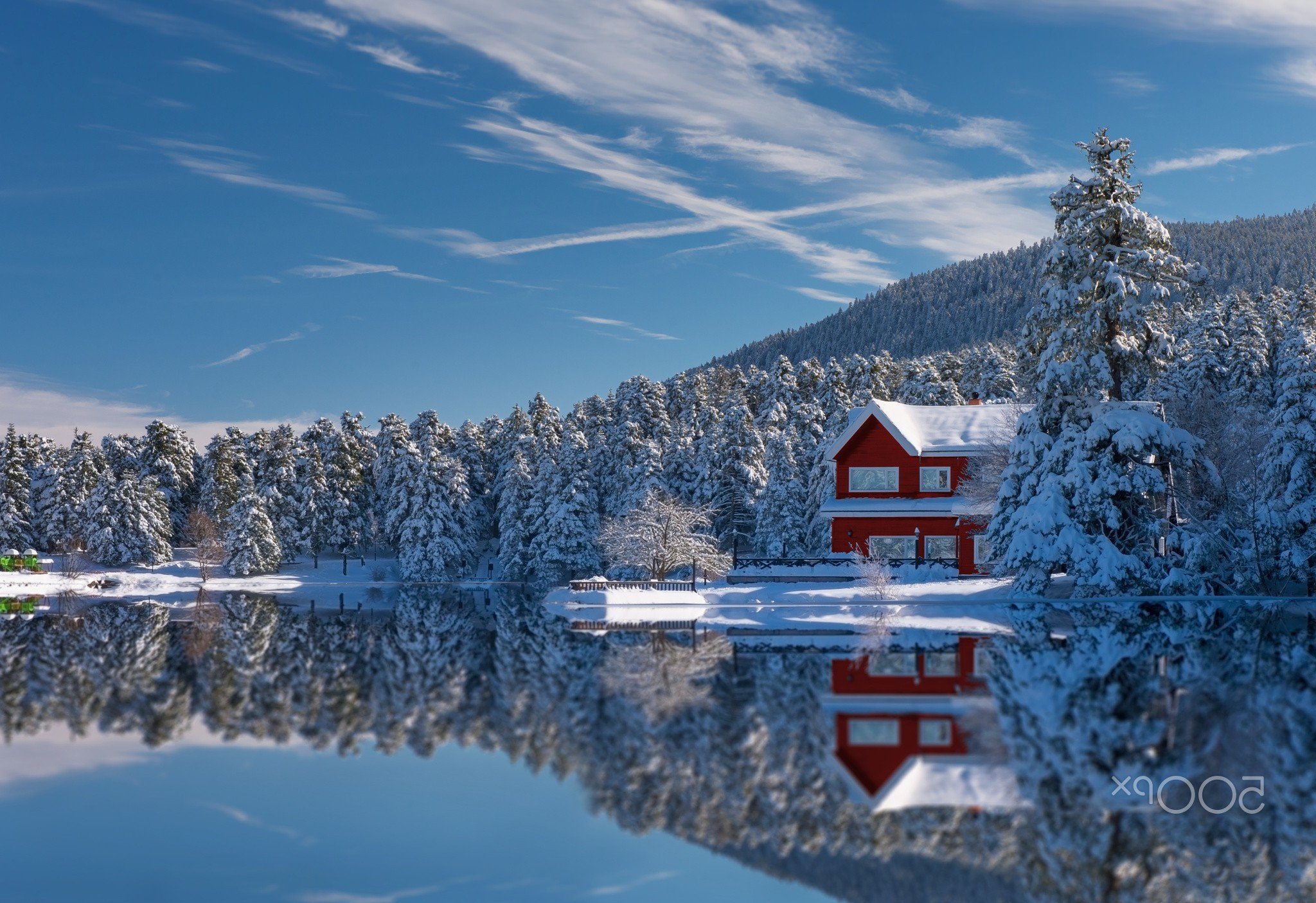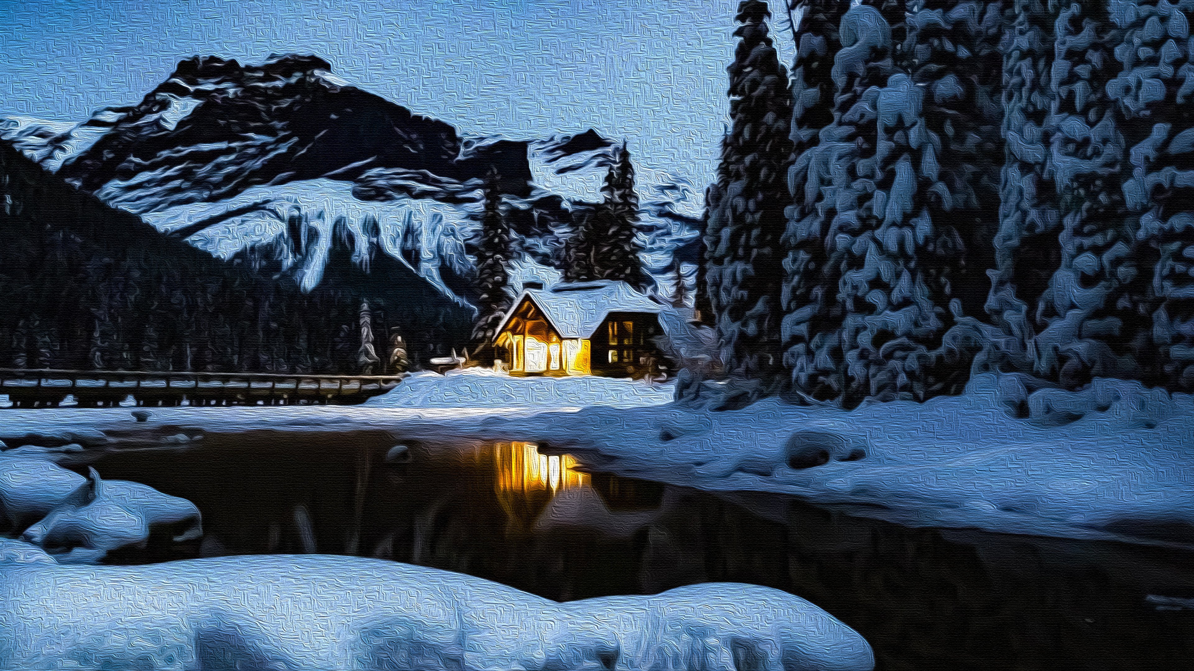 Дом у озера зимой
