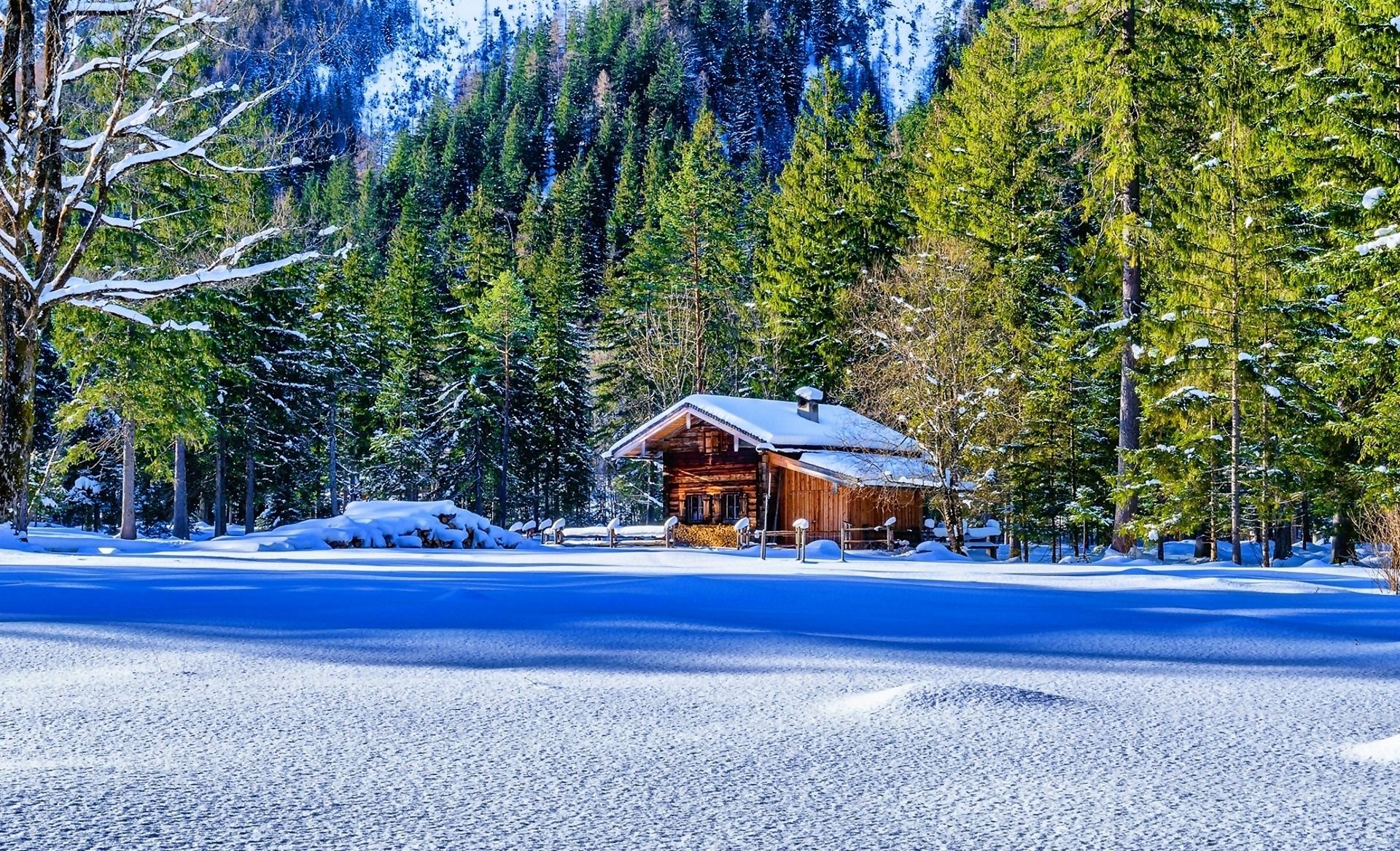 Заснеженный домик в горах