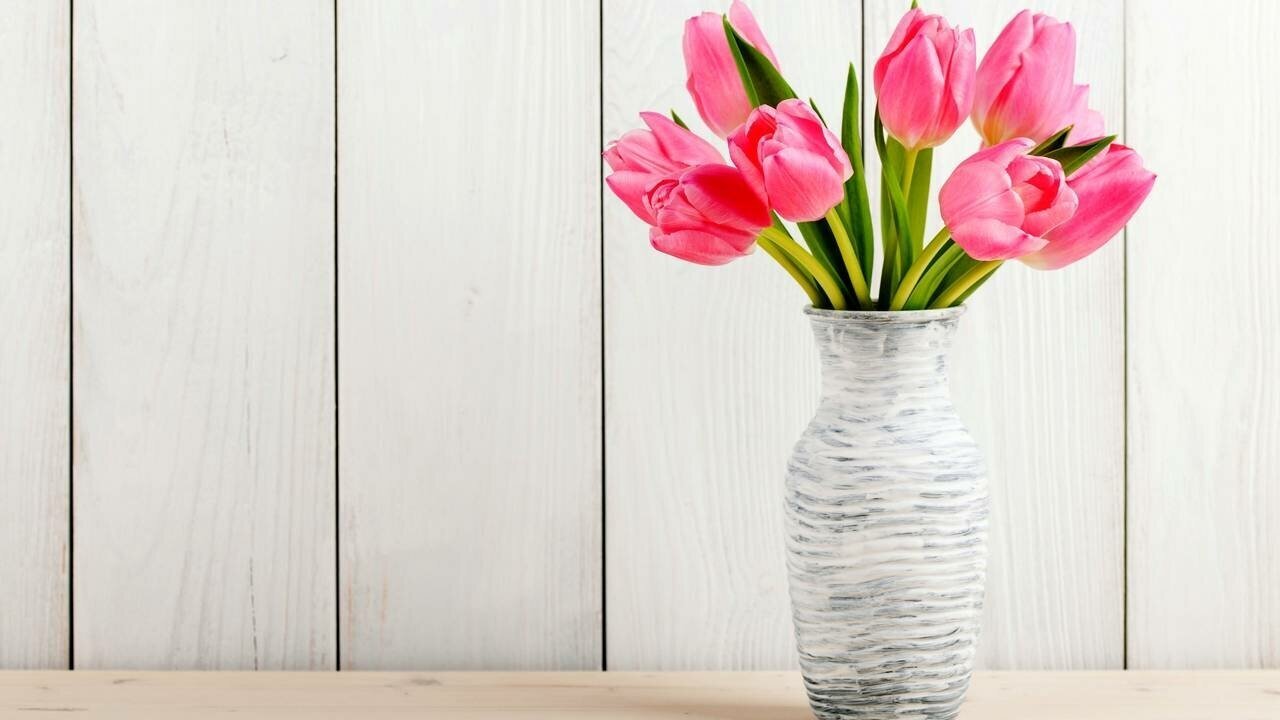 Розовые тюльпаны в вазе