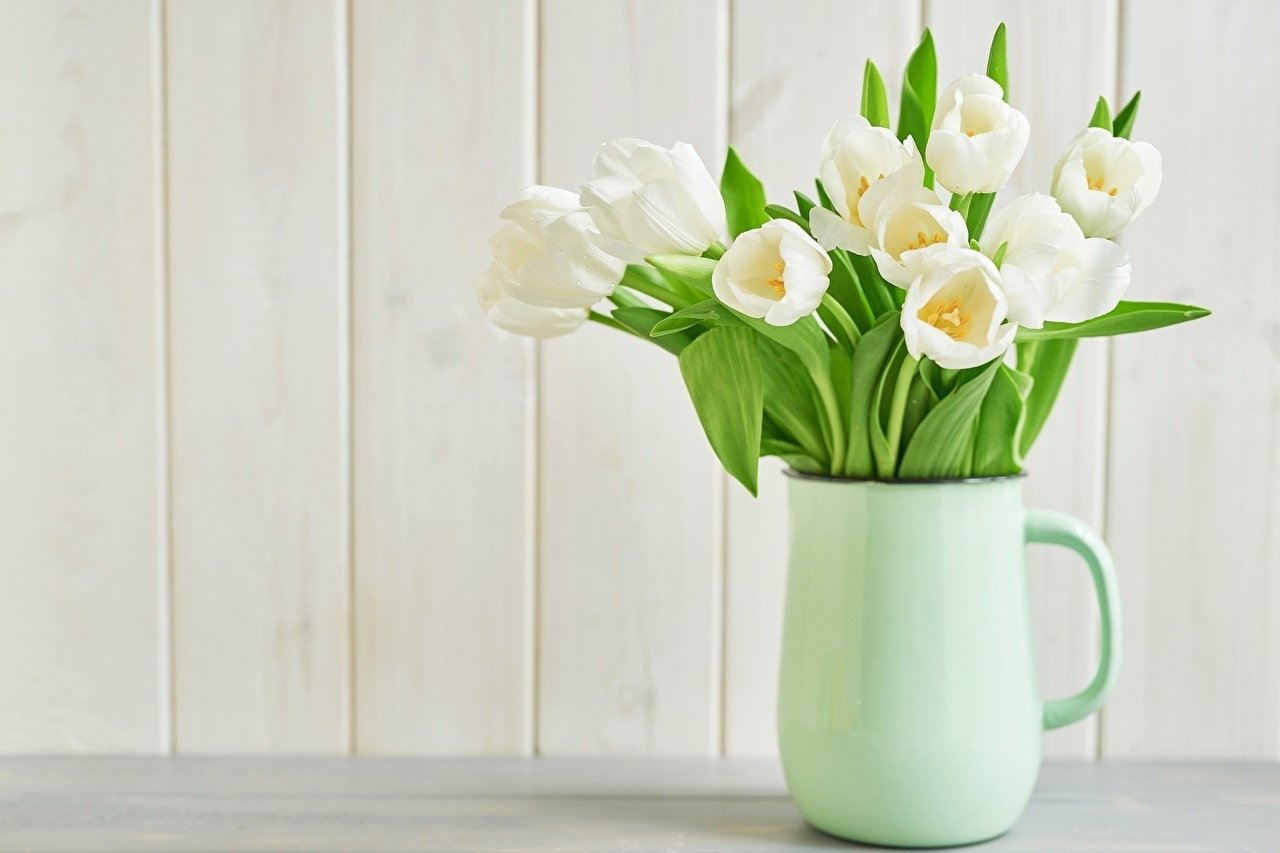 Белые тюльпаны в вазе