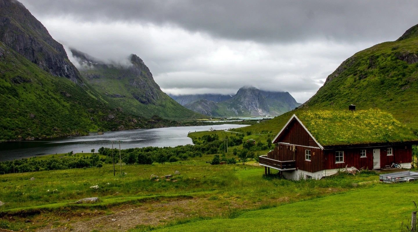 Домик у подножья горы Норвегия