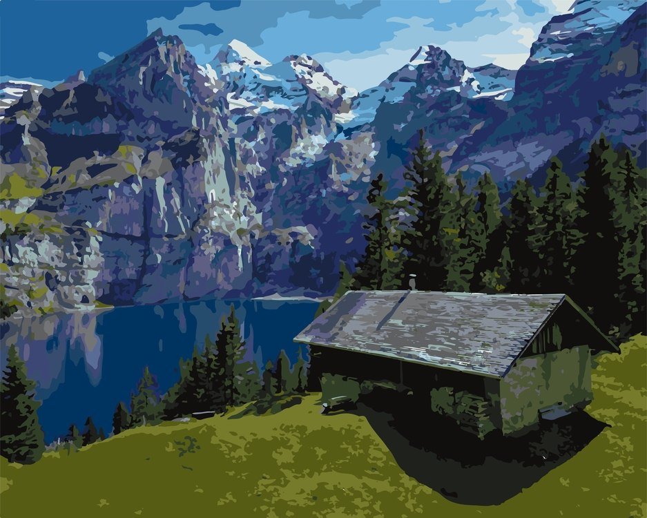 Швейцария природа домик озеро Альпы
