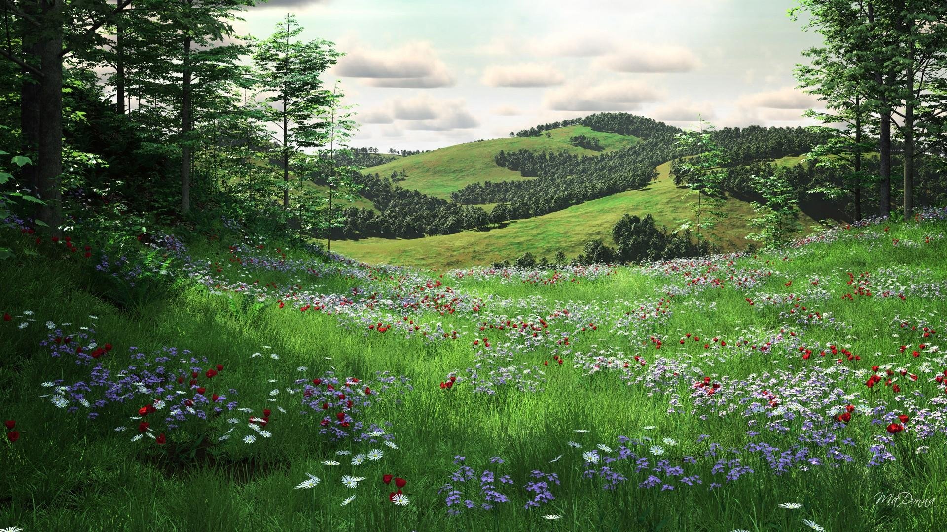 Красивая Поляна с цветами