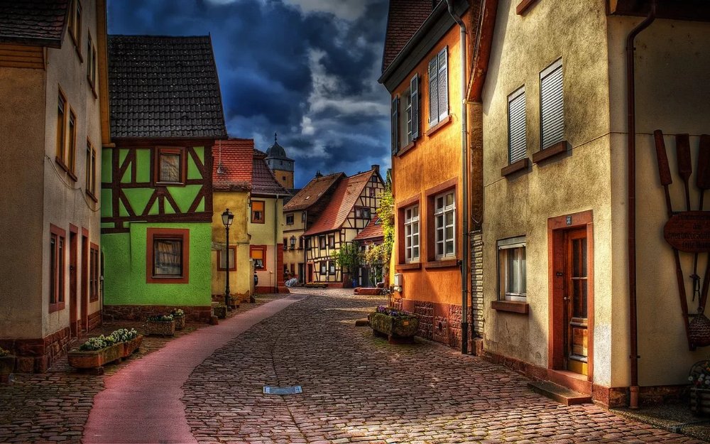 Фрески улочки Германии с кафе