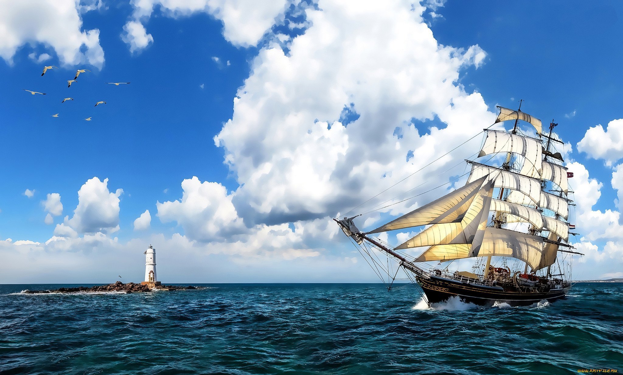 Корабль с парусами
