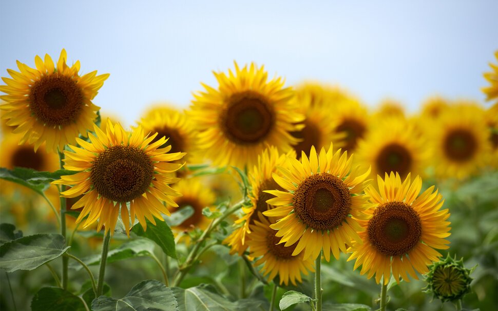 Подсолнухи на голубом небе