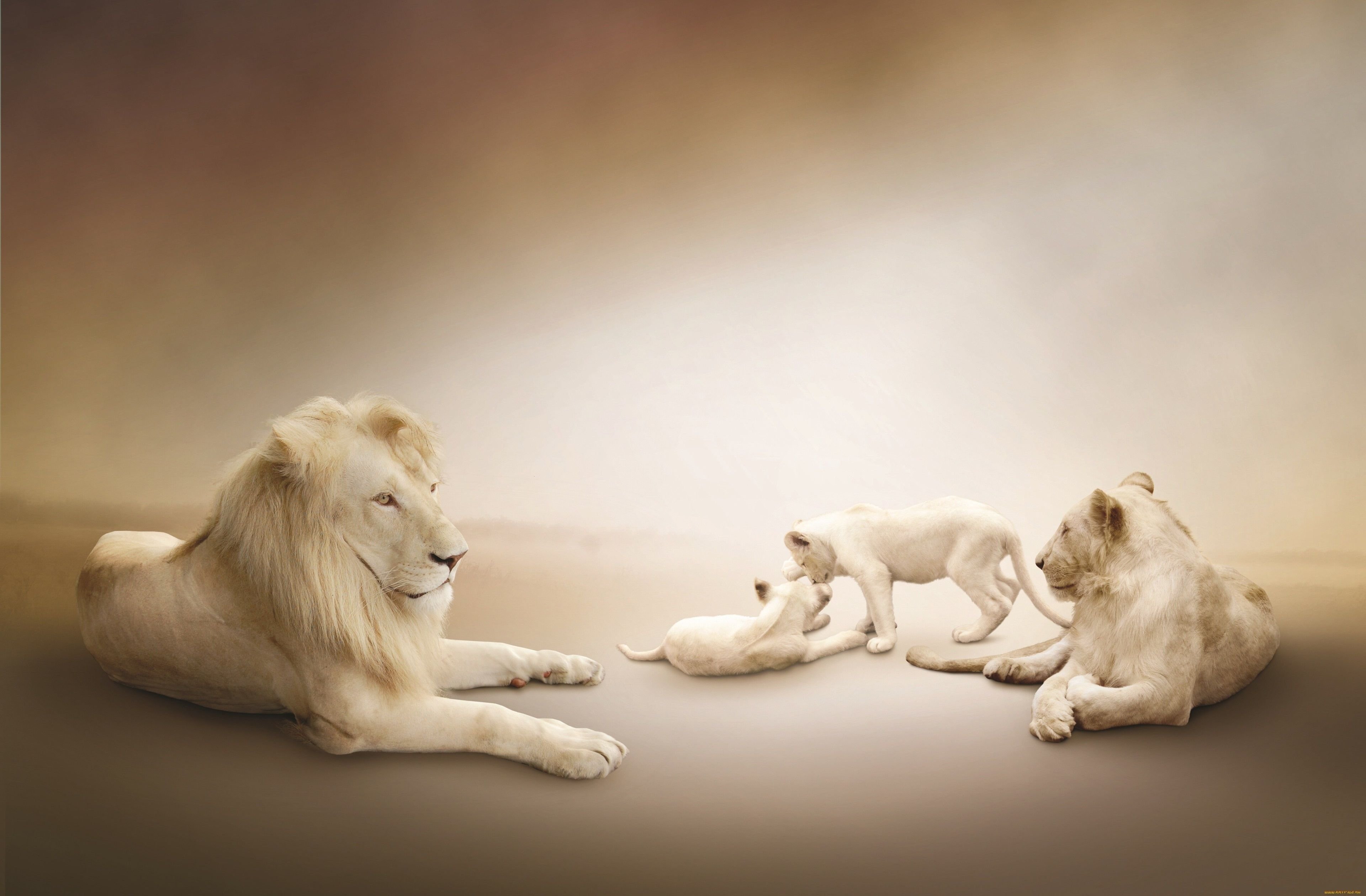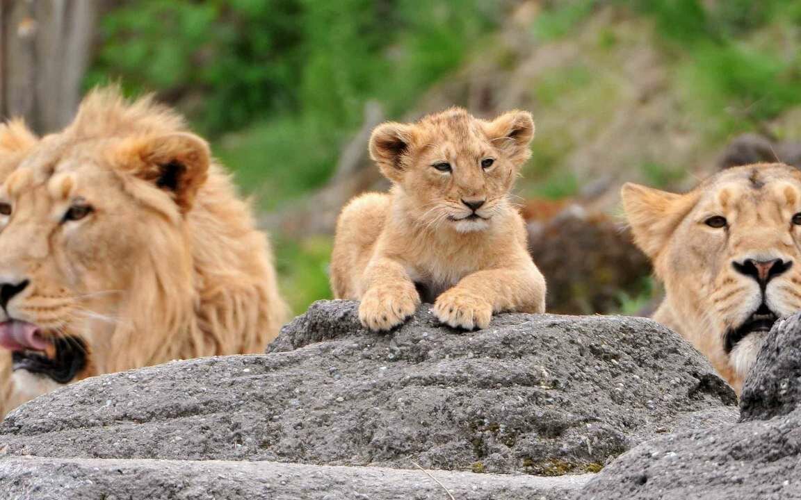 Лев львица и Львенок семья