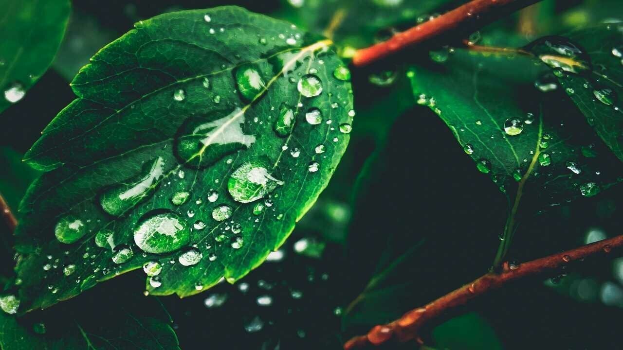 Капли на листьях