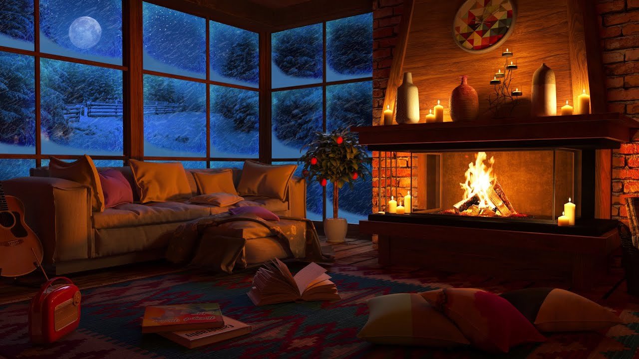 Звуки метели за окном и уютный камин