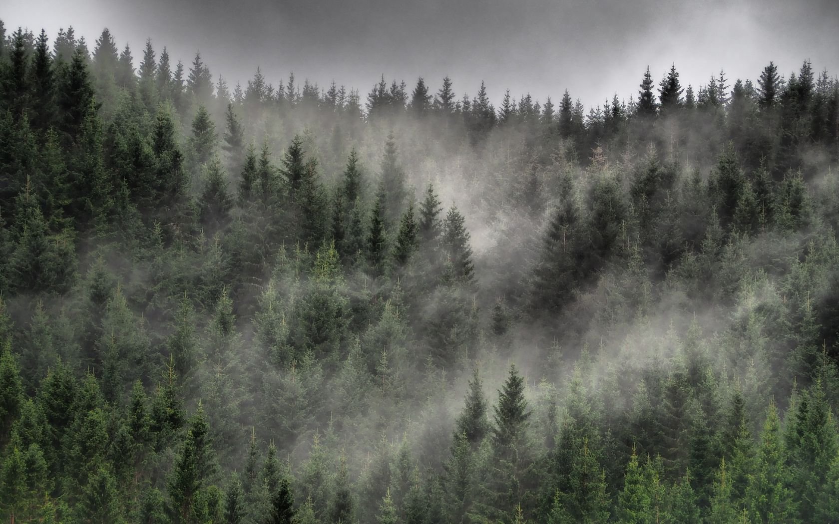 Туманный еловый лес