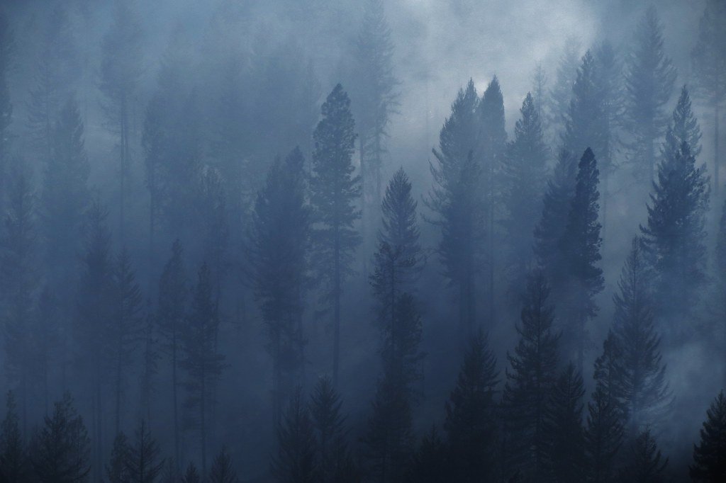 Хвойный лес в тумане