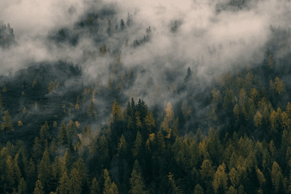 Лес горы туман