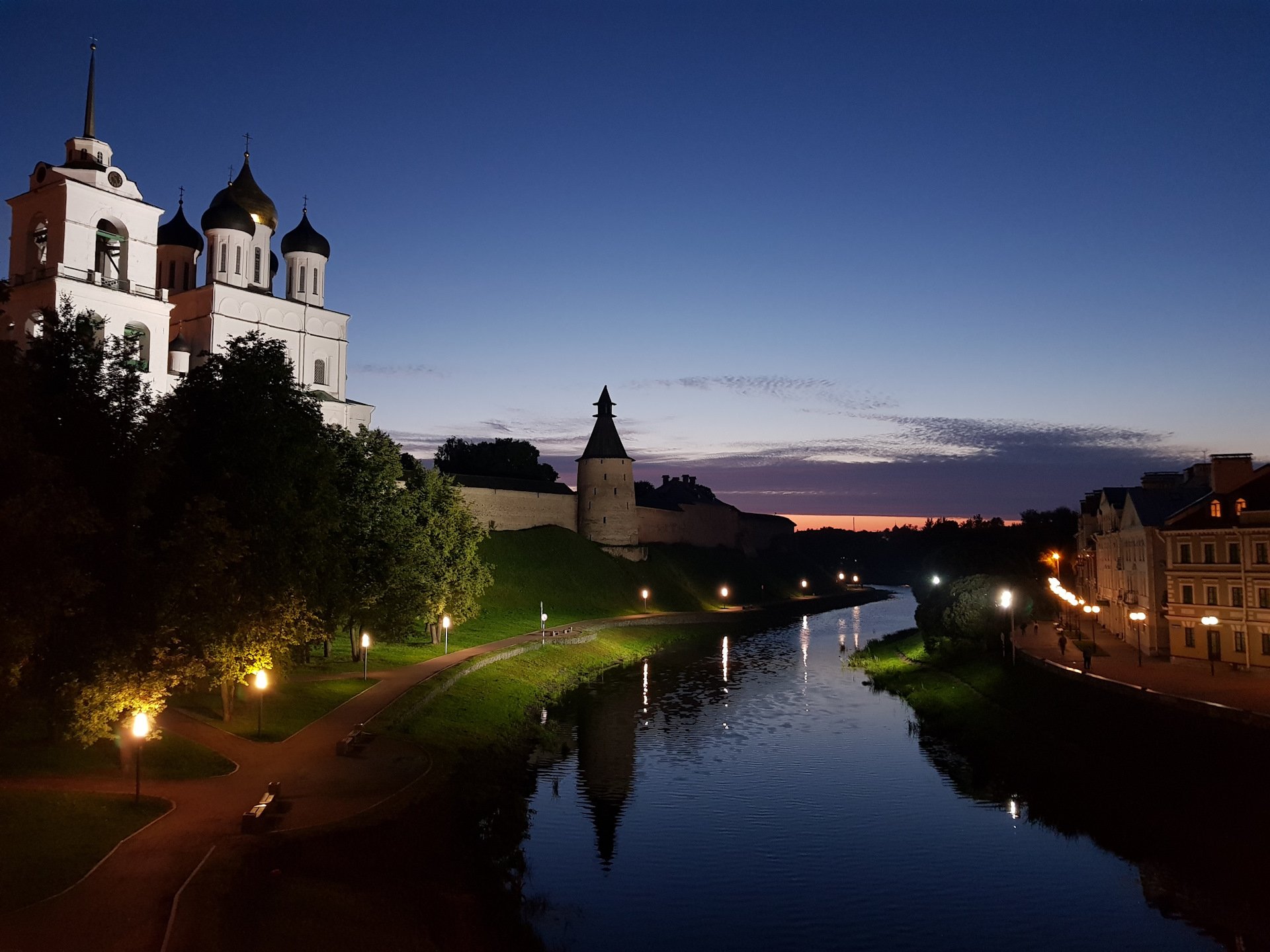 Псков набережная реки вечером