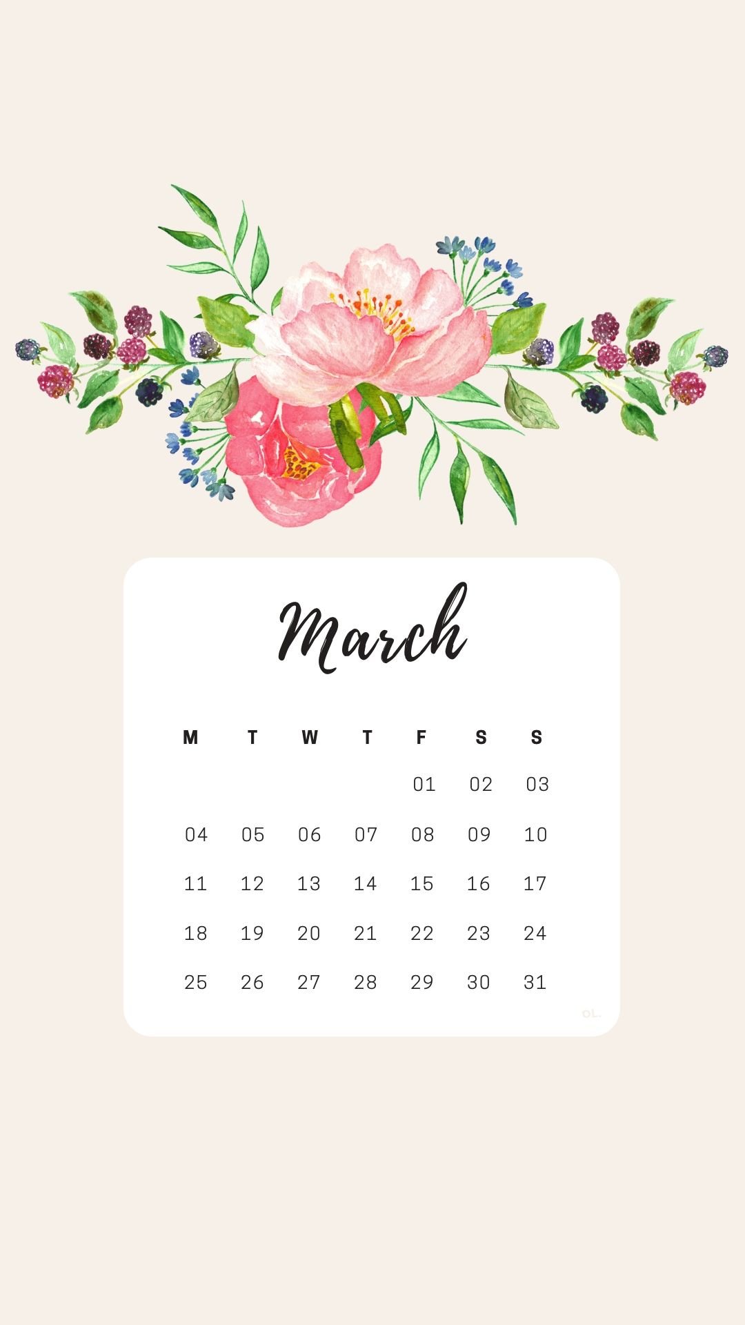 Календарь на март обои на телефон