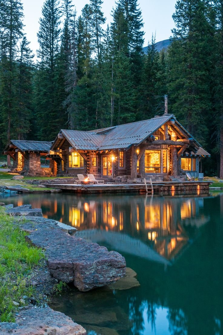 Лес горы штат Монтана домик у озера