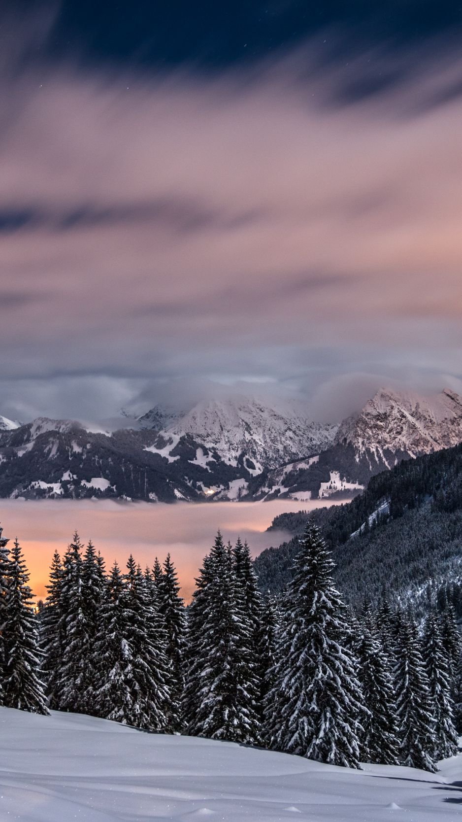 Снежный лес и горы