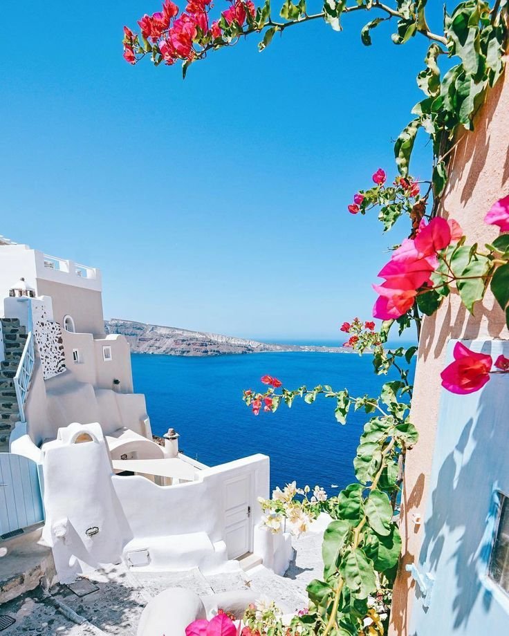 Греция цветы море Санторини