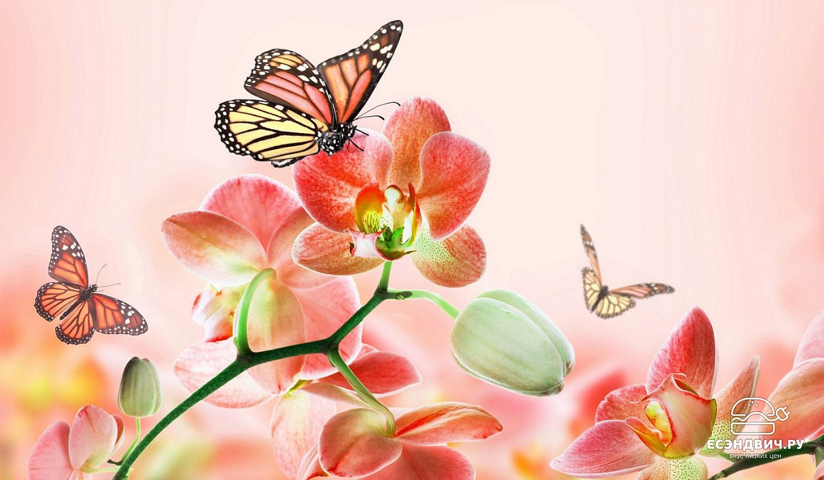 Фотообои с бабочками и цветами