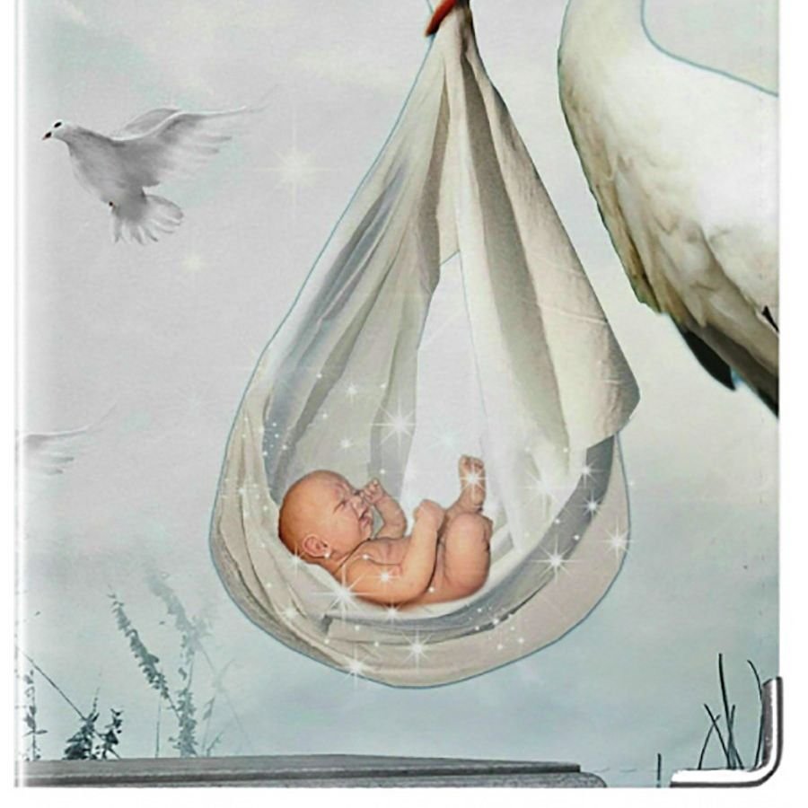 Аист несет ребенка