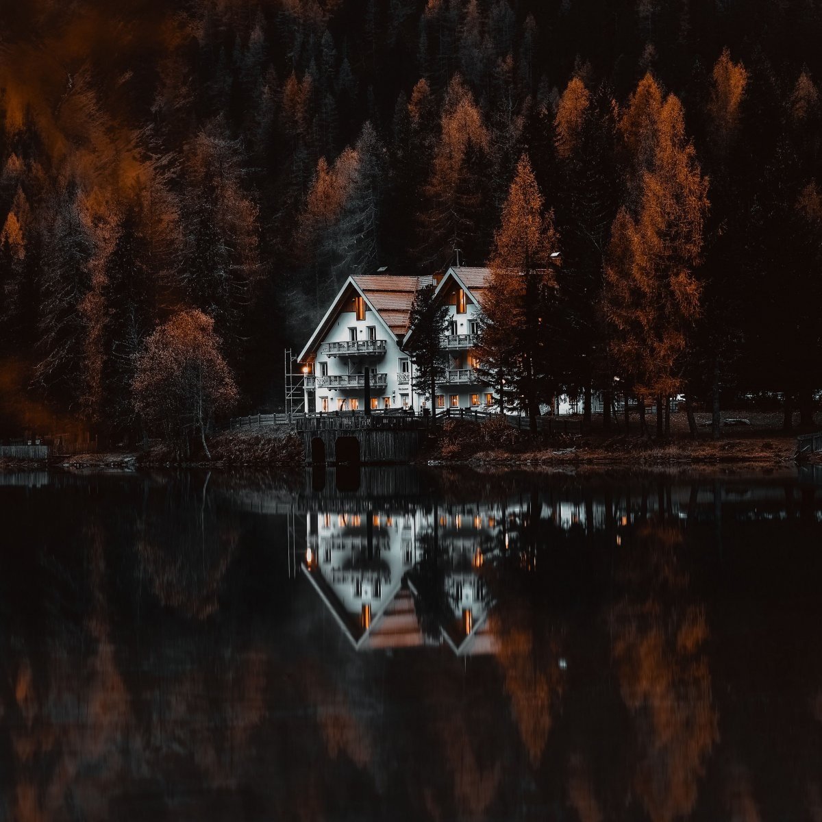 Уединенный домик в лесу у озера