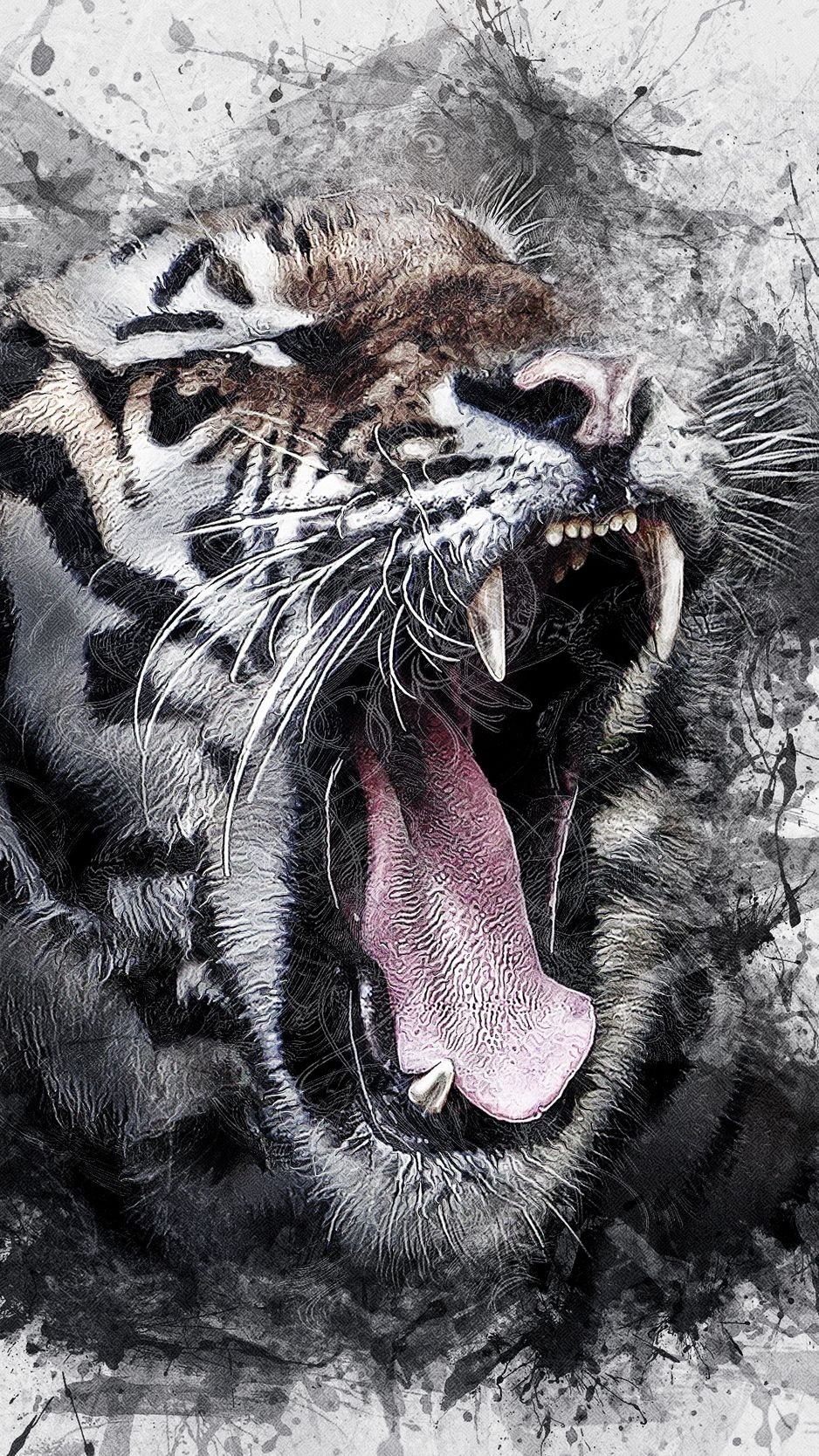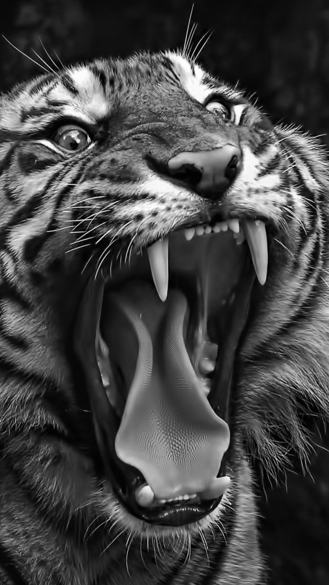 Оскал тигра черно белый