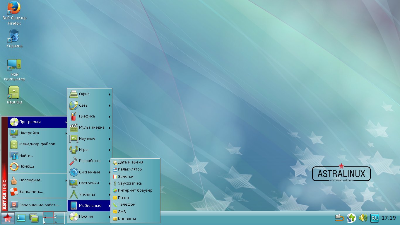 Интерфейс ОС Астра линукс