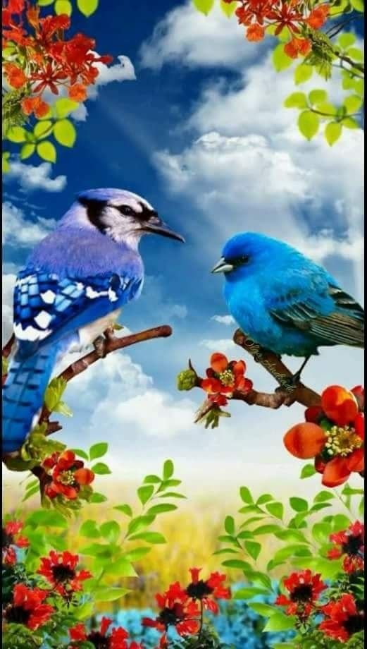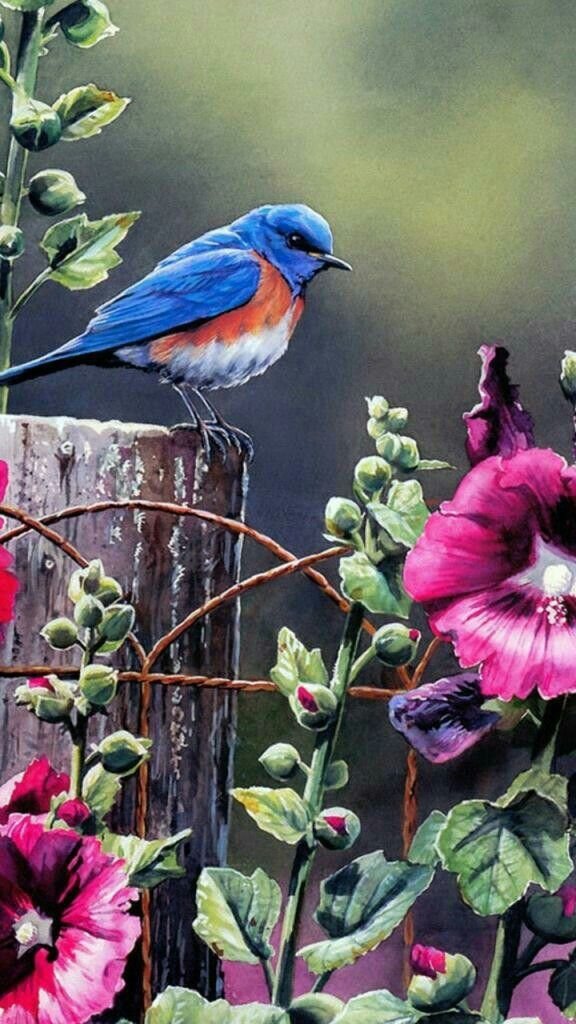 Красивые цветы и птицы