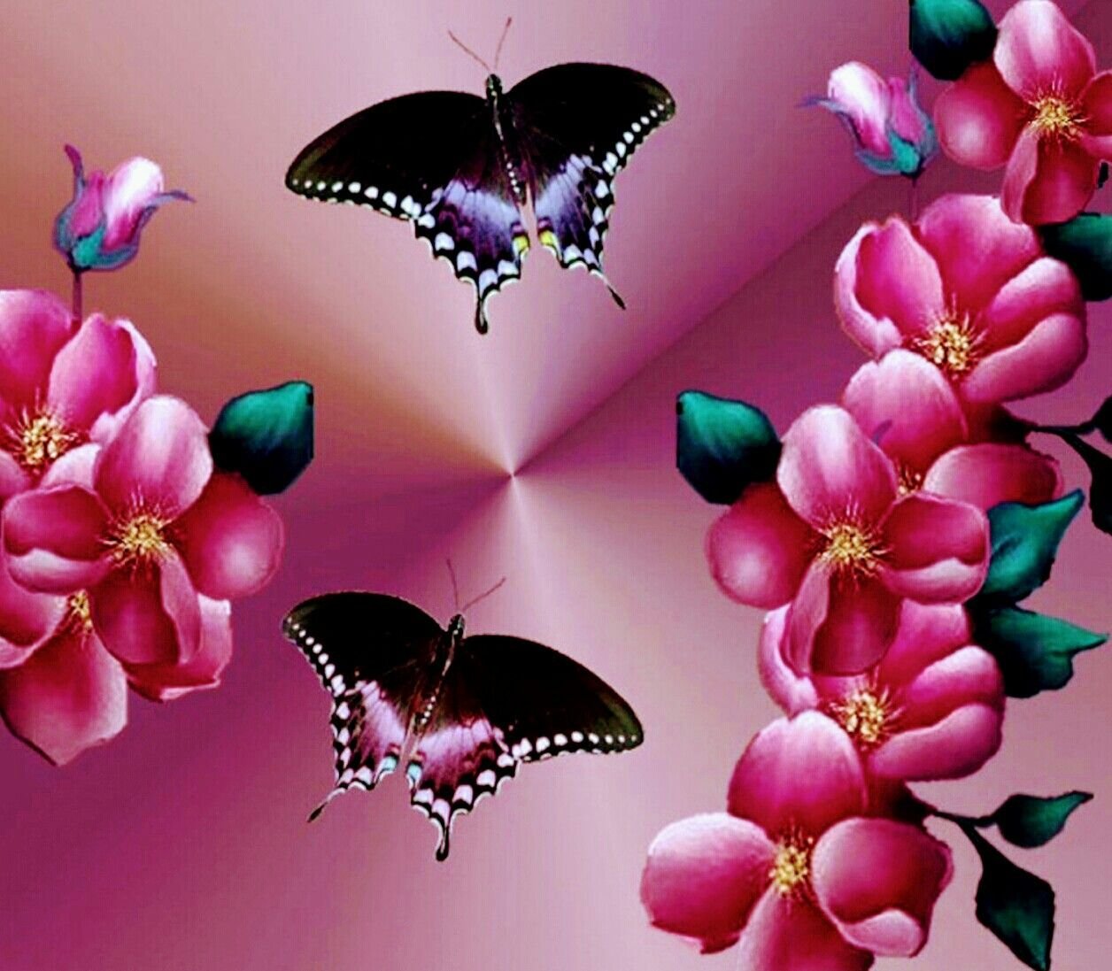 Фотообои с бабочками и цветами