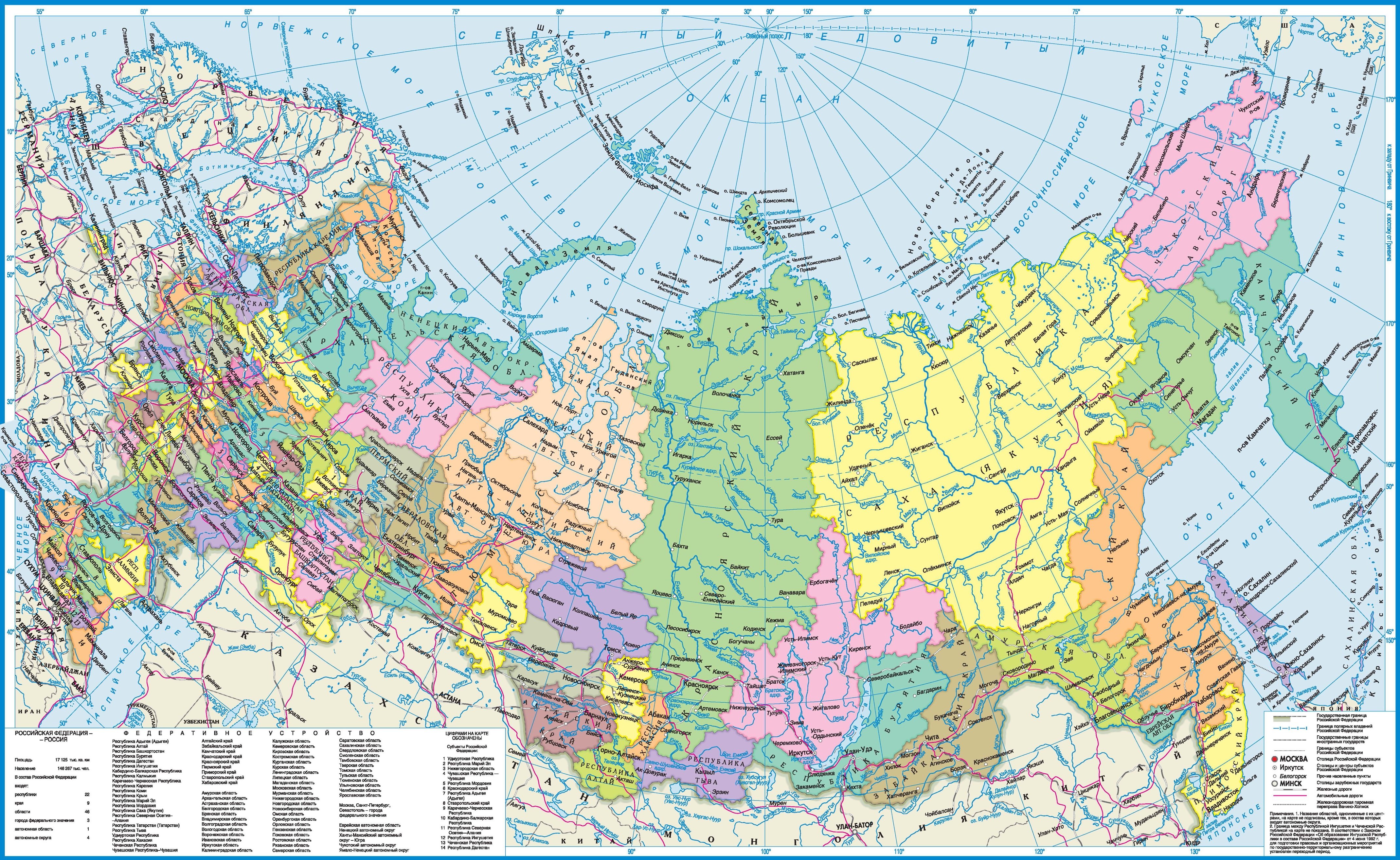 Политическая карта РФ В хорошем качестве