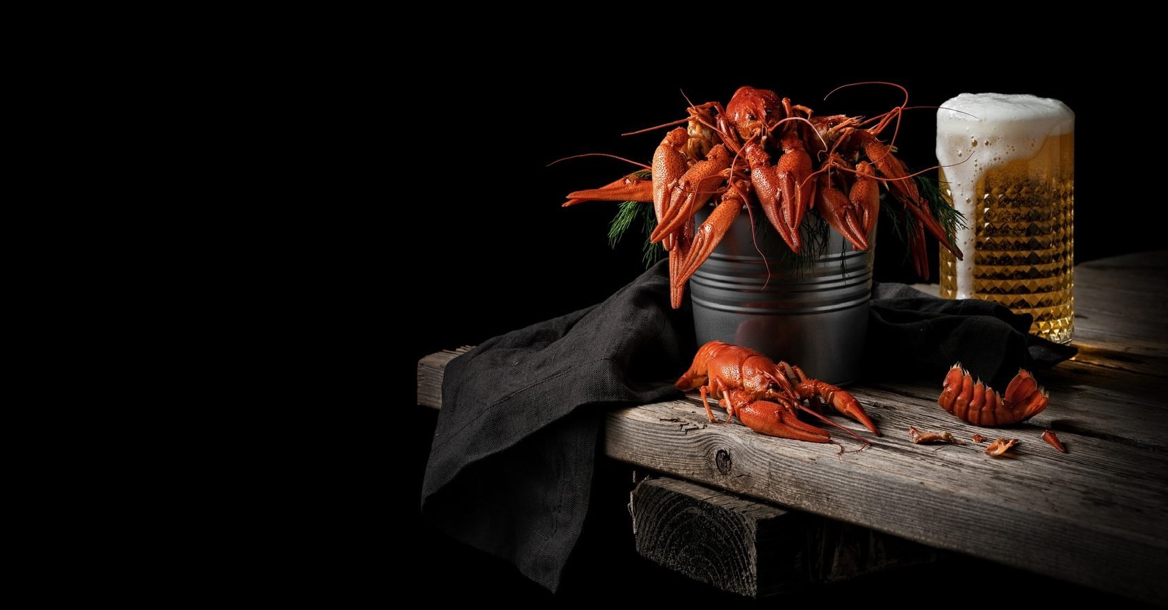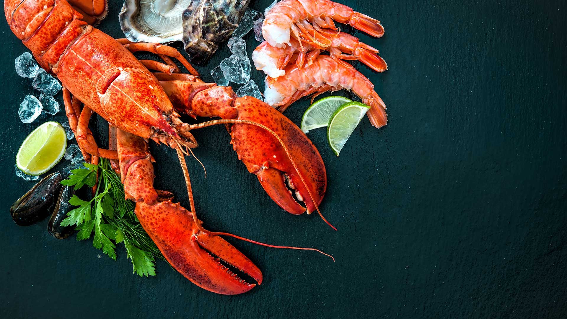 Морепродукты на черном фоне