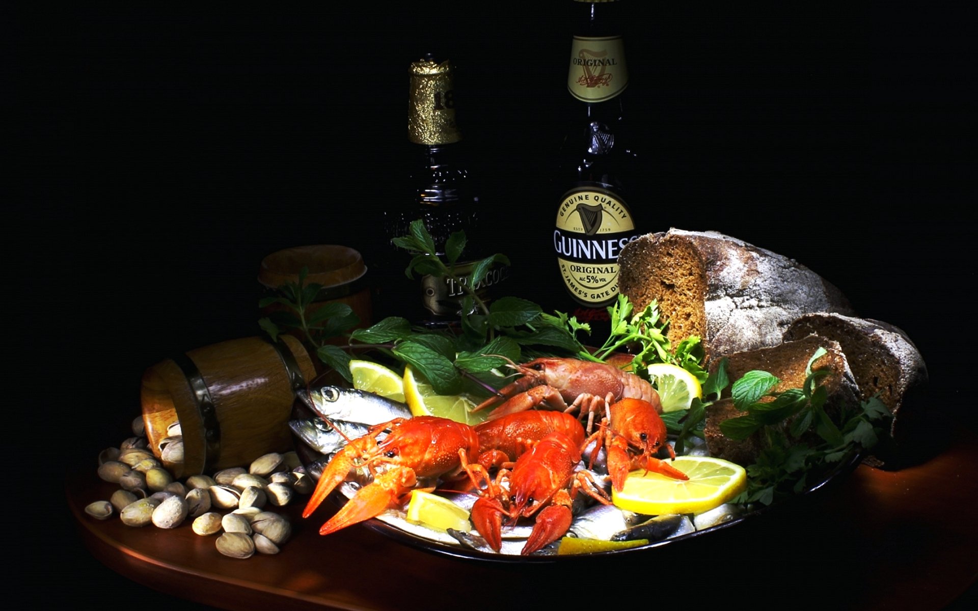 Стол с креветками и пивом