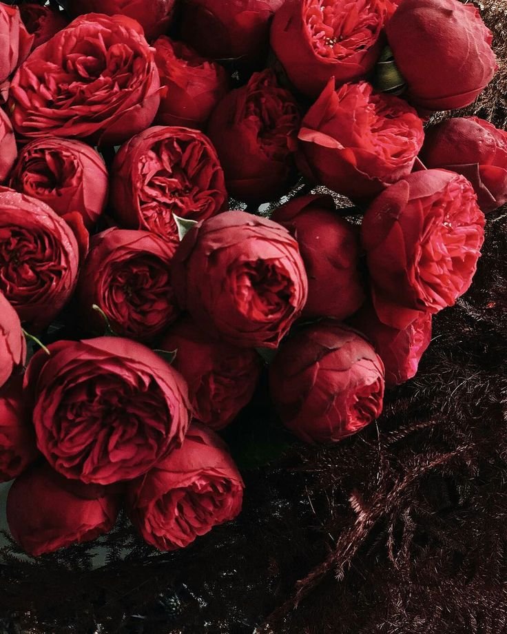 Красные пионовидные розы