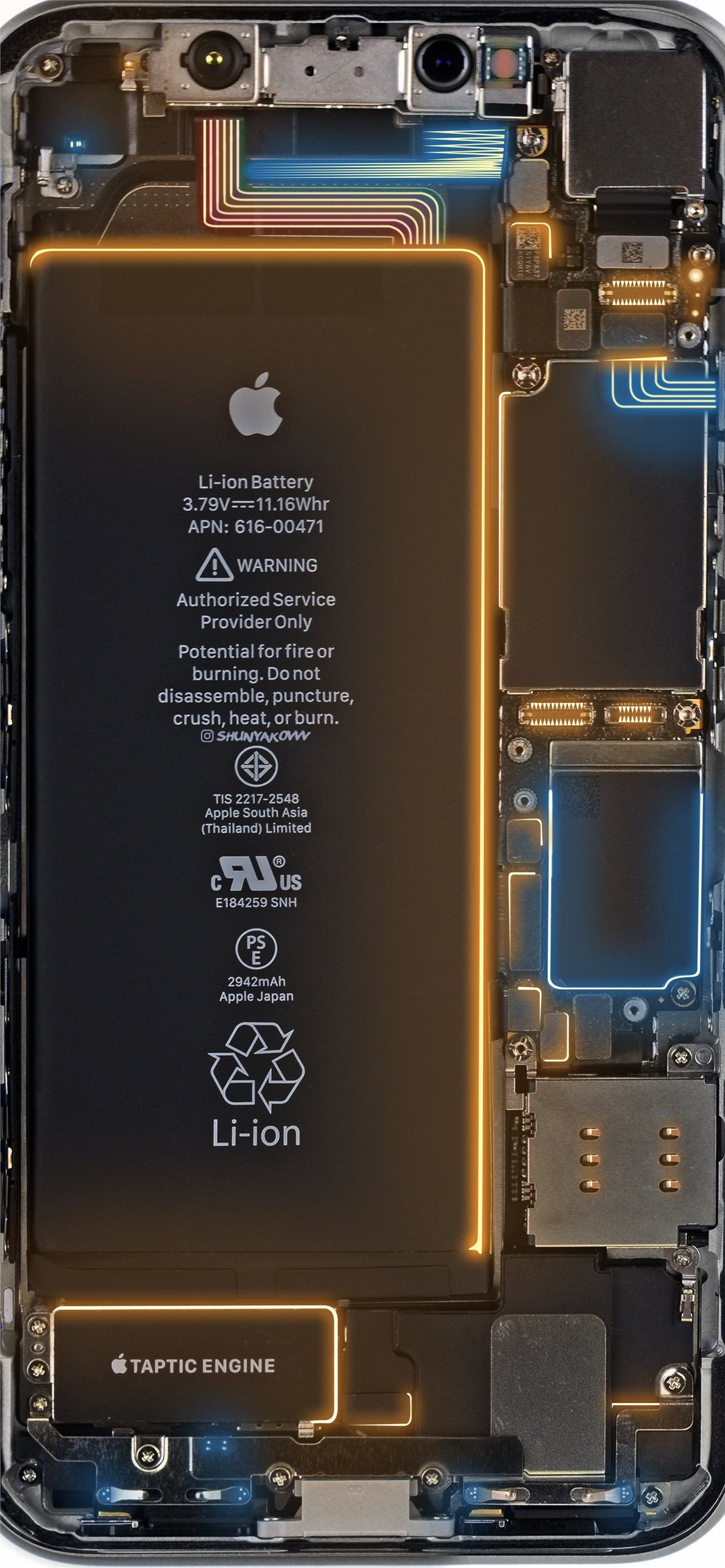 Внутренности айфона с подсветкой