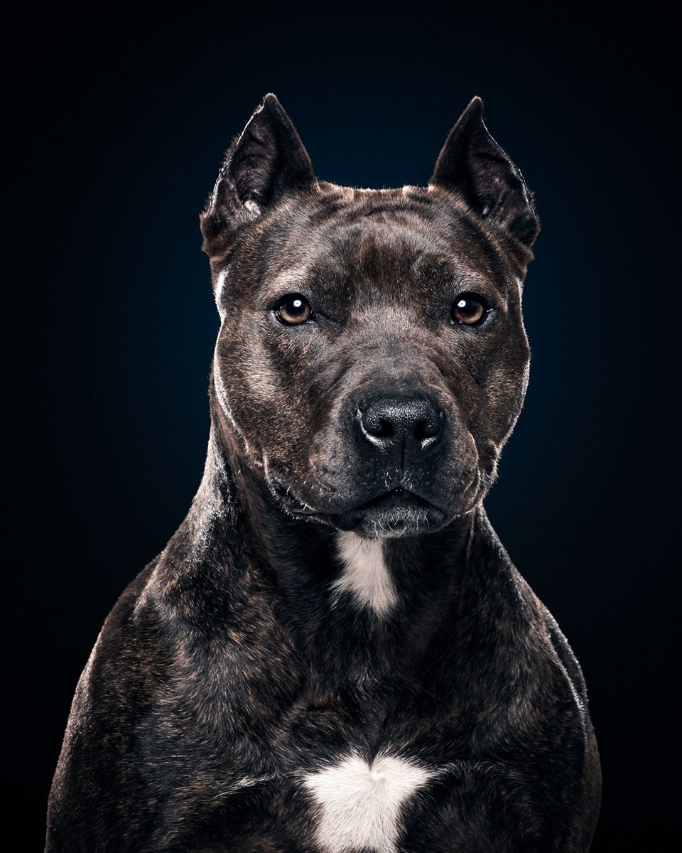 Стаффордширский терьер на черном фоне