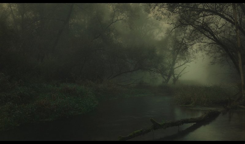 Ночное болото с кувшинками