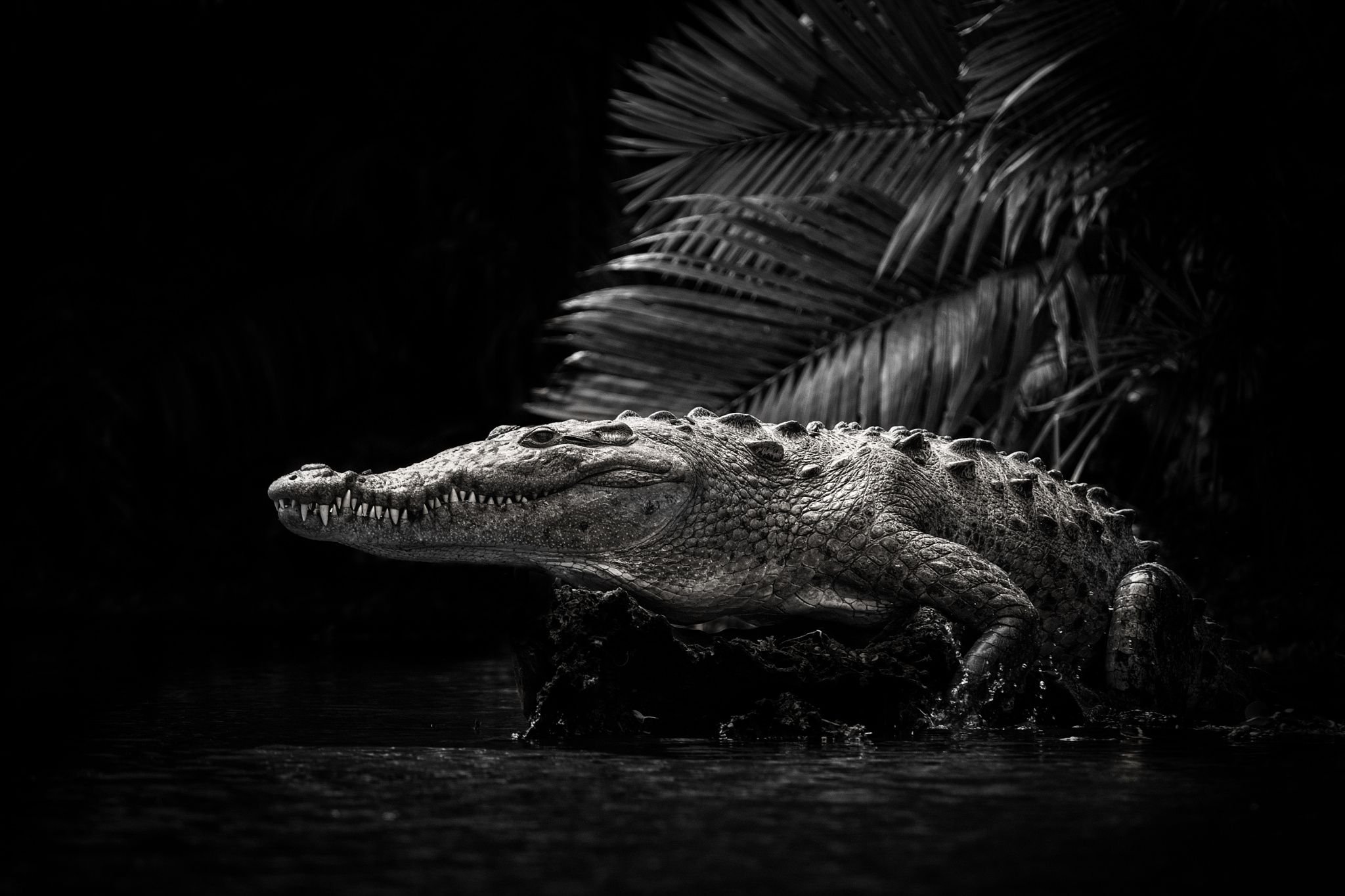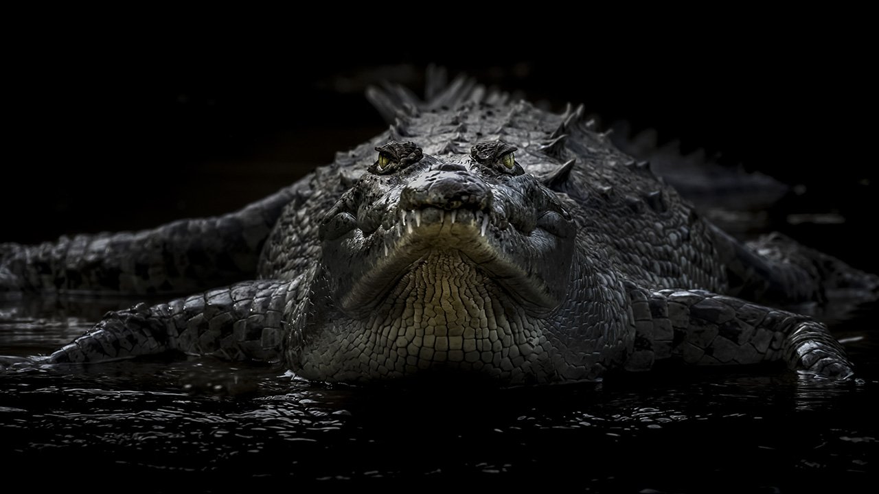 Крокодил на черном фоне