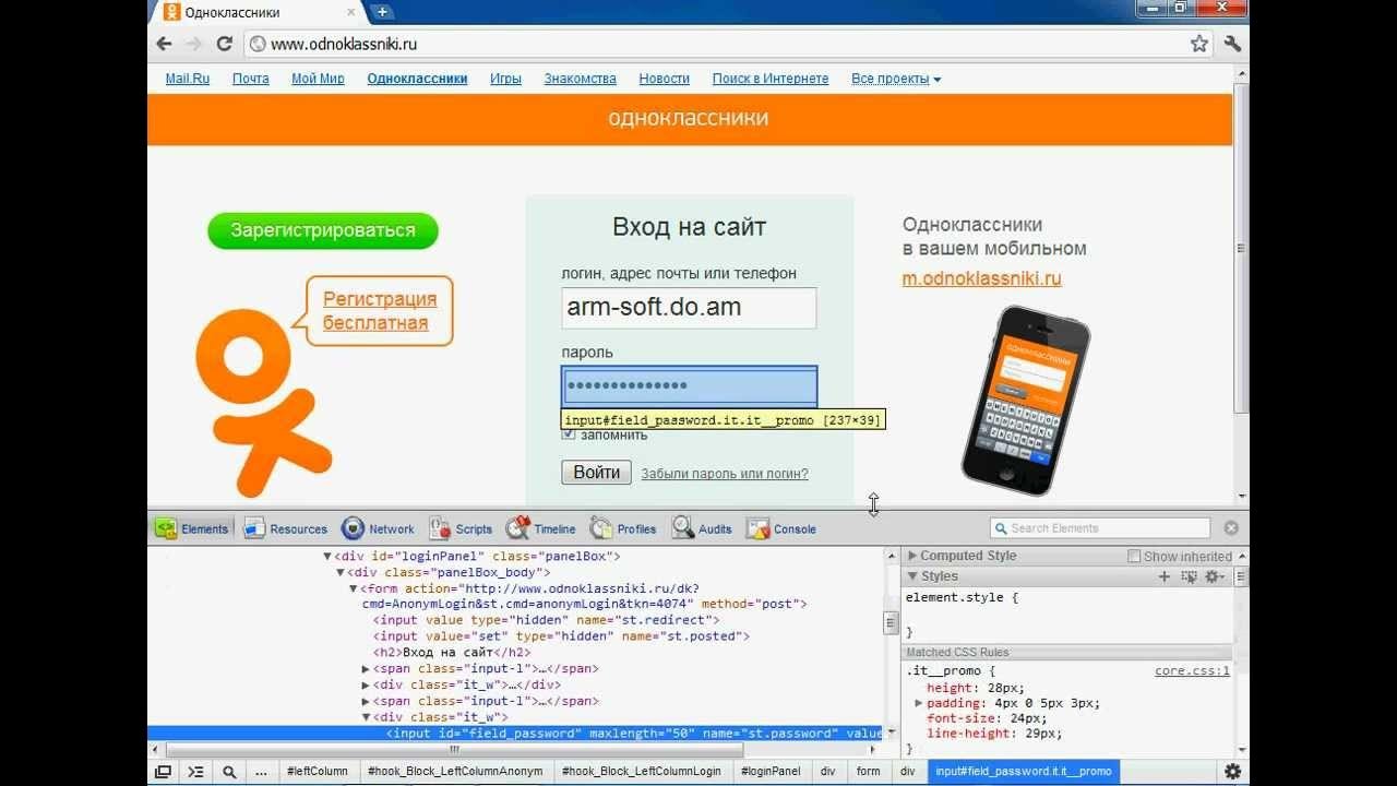Одноклассники логин и пароль