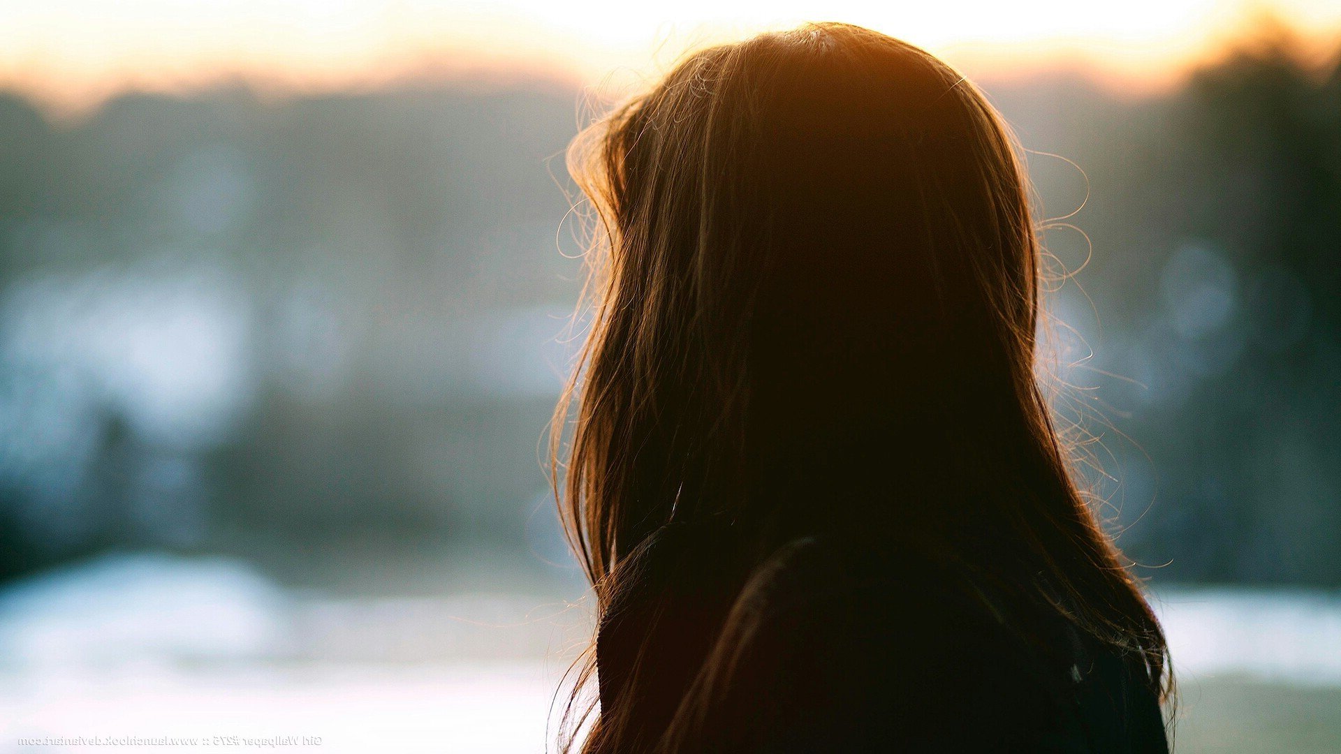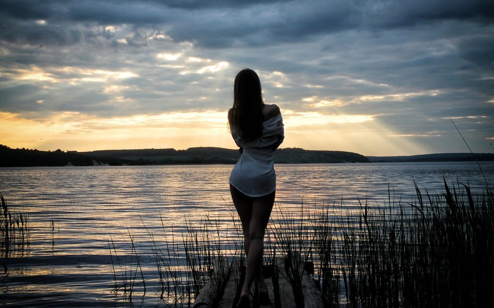 Девушка на закате спиной