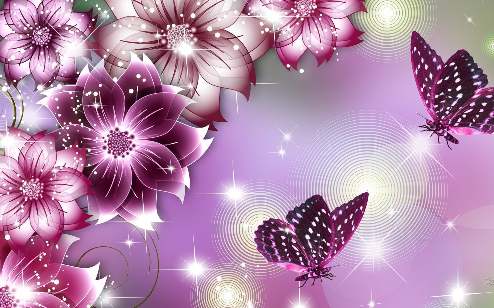 Красивые цветы и бабочки
